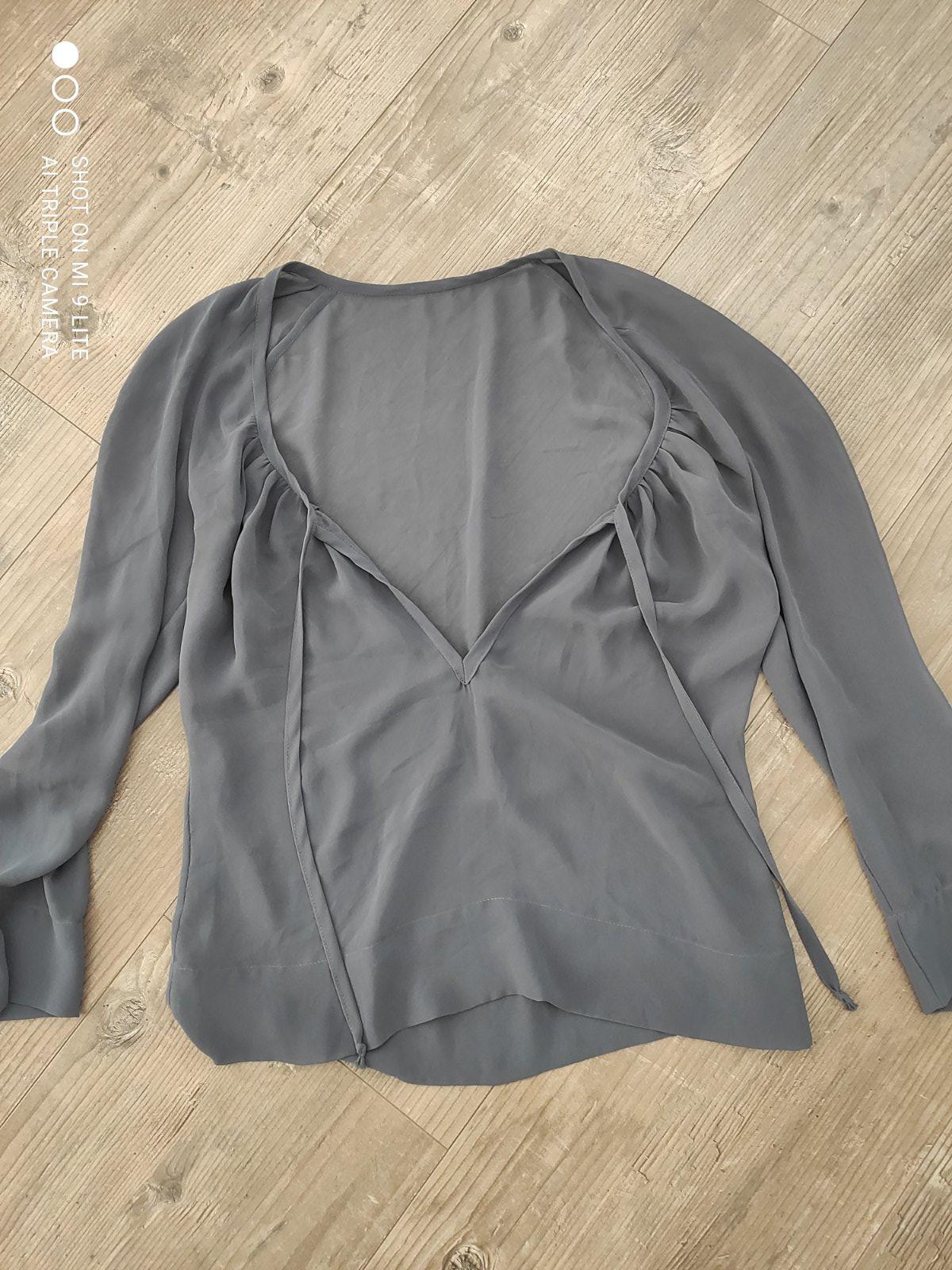 krasna seda priehladna bluzka s hlbokym vystrihom. oblecena bola 1 krat