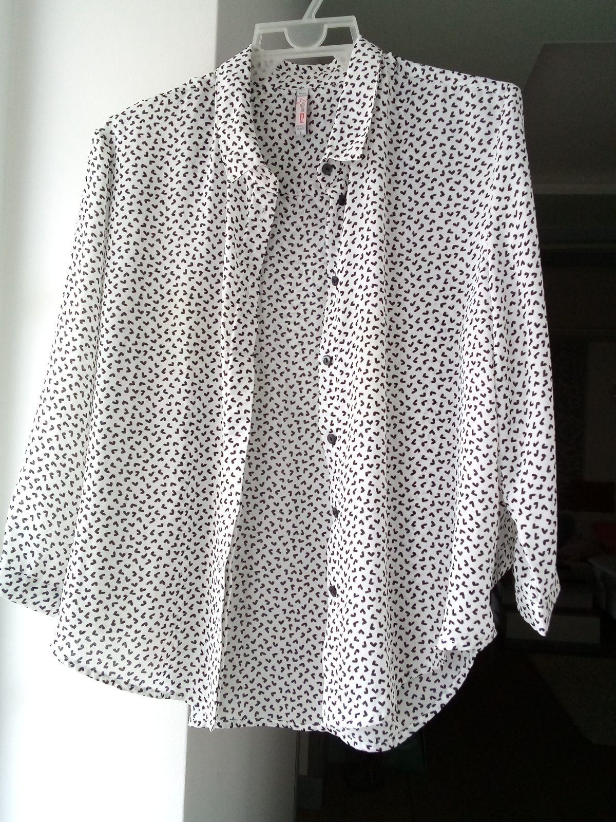 dámska blúzka, vo výbornom stave, bez poškodenia obvod blúzky v páse 106cm dlžka 66 cm rukáv dlhý na vyhrňovanie 3/4