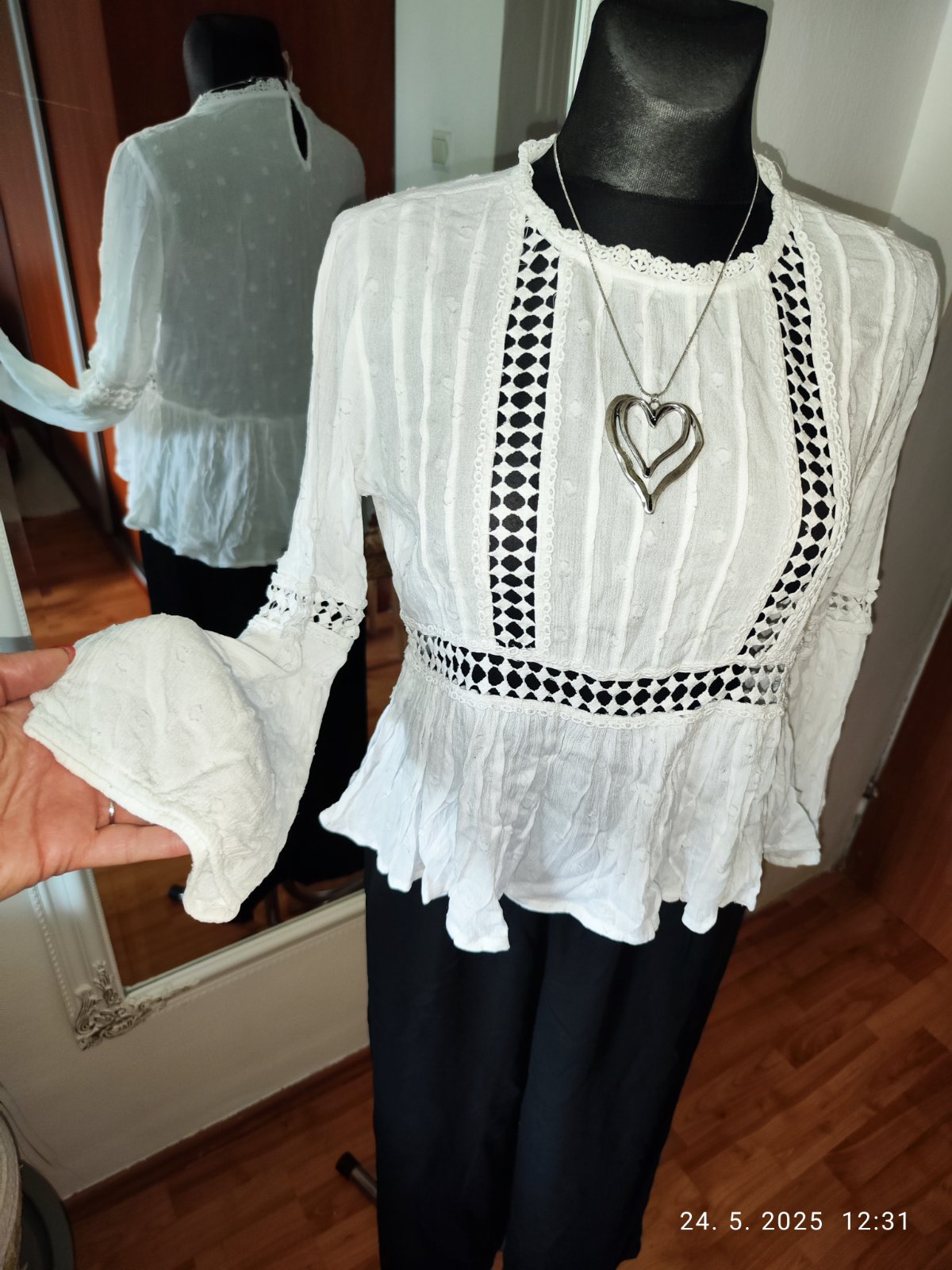 Predam bluzku, zadna strana a rukavy trickovina. Dlzka 65, rukav od krku 51 cm.