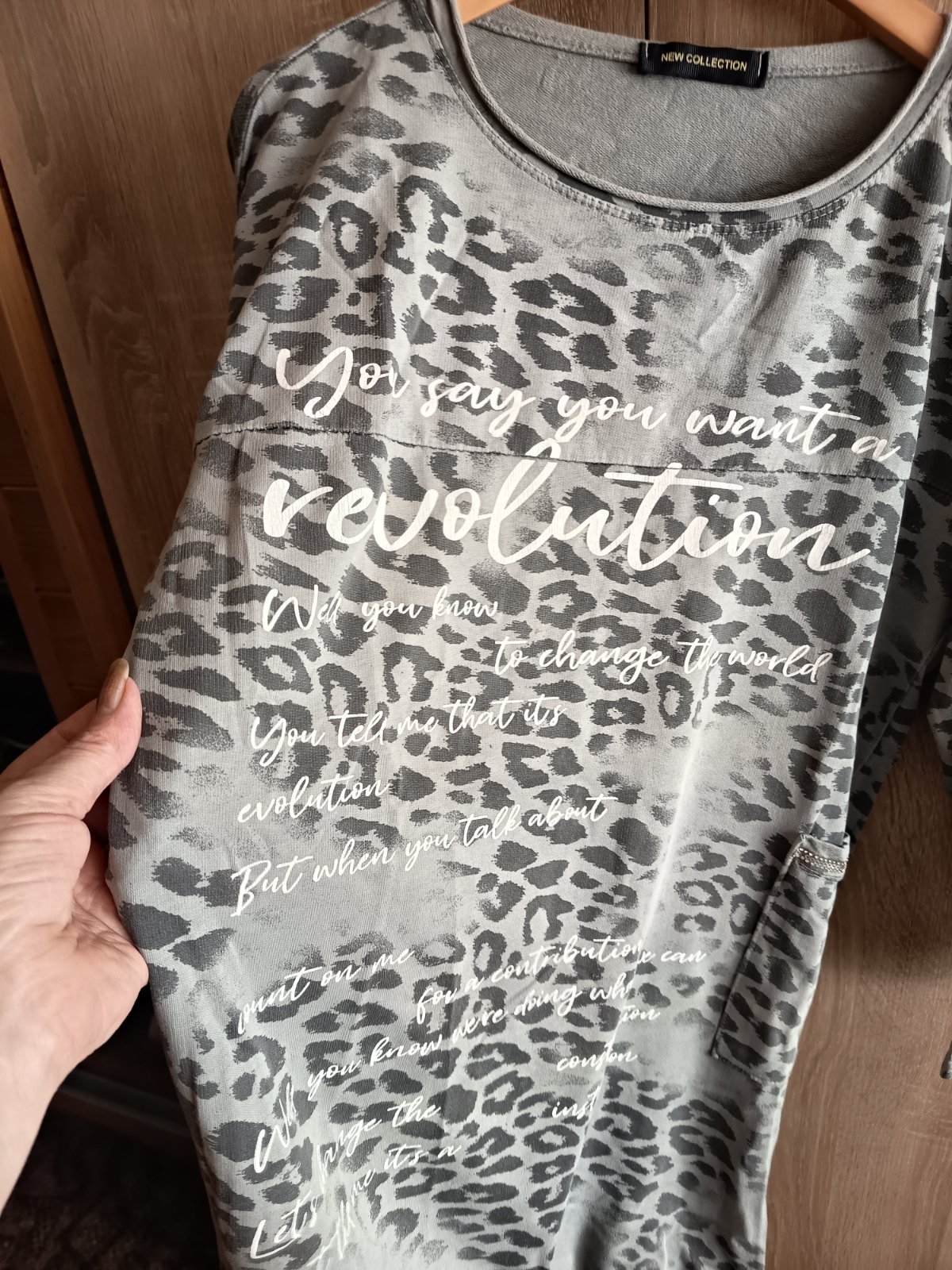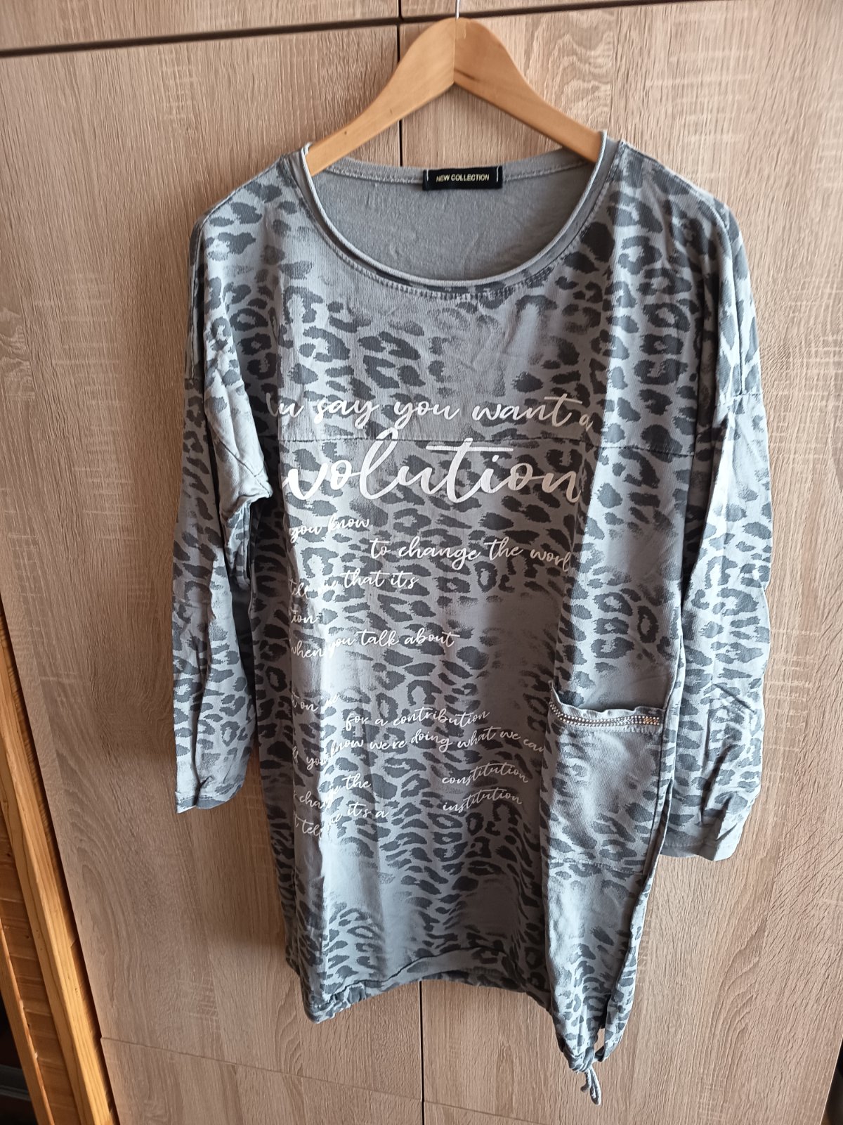 Dámska elegantná tunika Veľmi pekne oživí váš outfit. Pekne sadne na akéjkoľvek postave. Veľkosti: 42, 44, 46, 48, 50, 52, Ihneď k odberu.