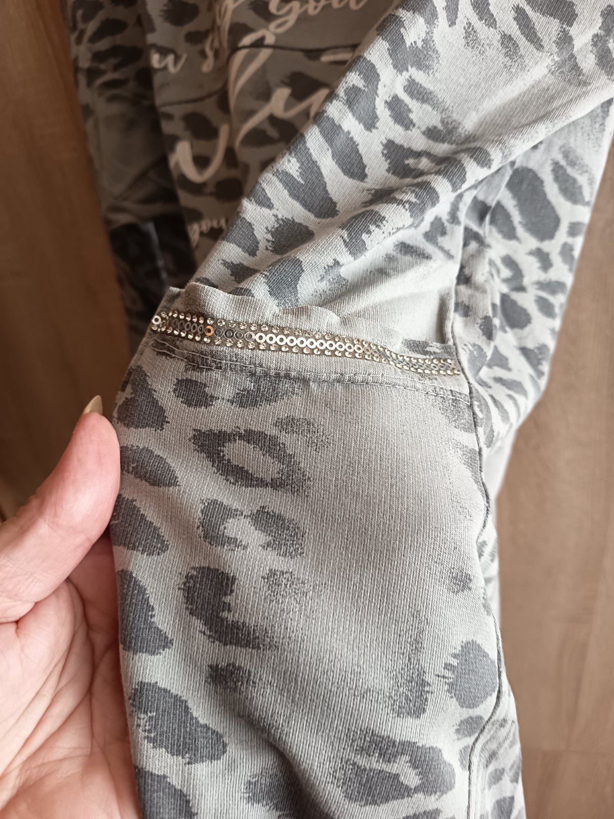 Pekny stav. Sirka pod pazuchami 57 cm. Sirka cez brucho 52 cm. Dlzka merana vzadu od goliera 59 cm. Rukavy trojstvrtove. Bez chyby.