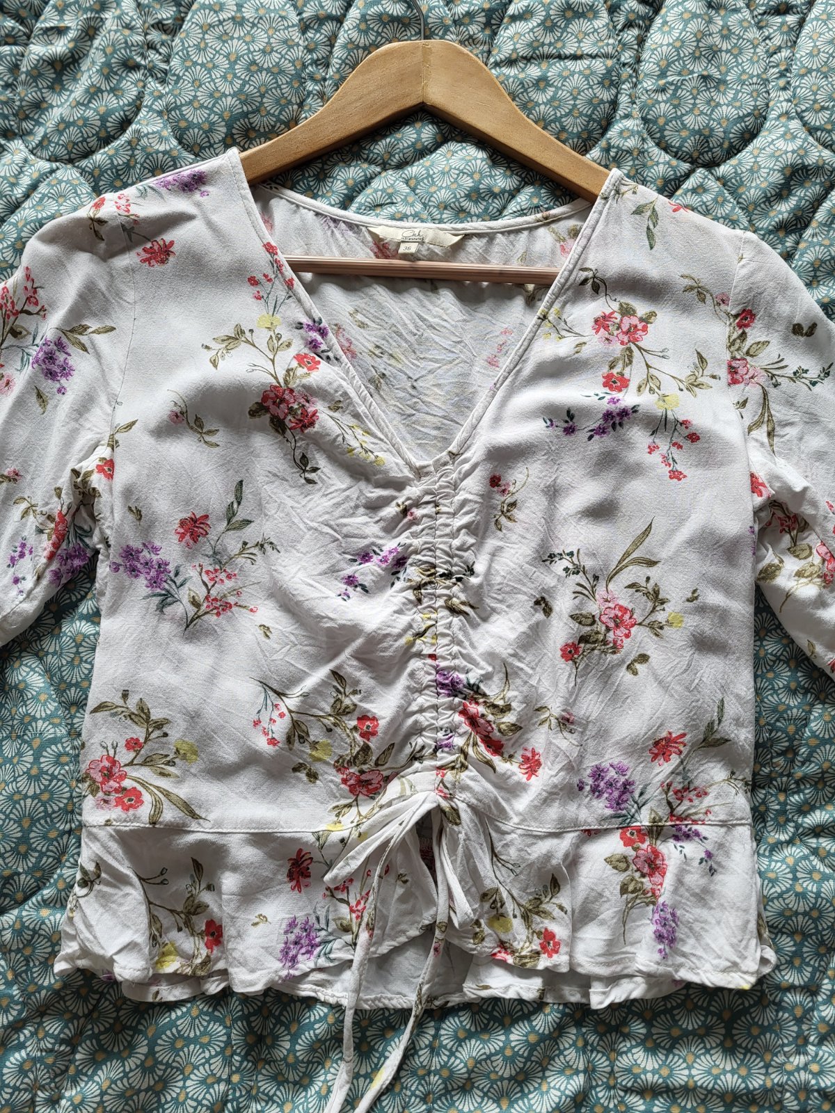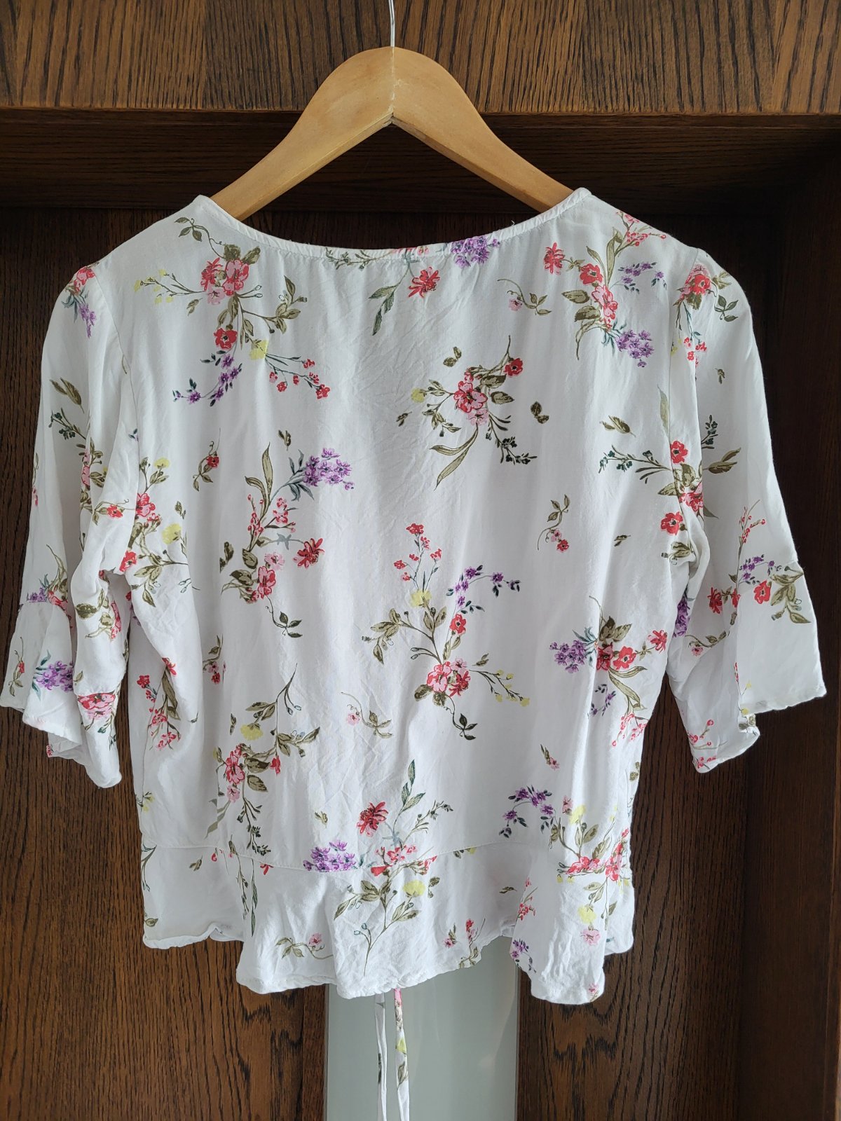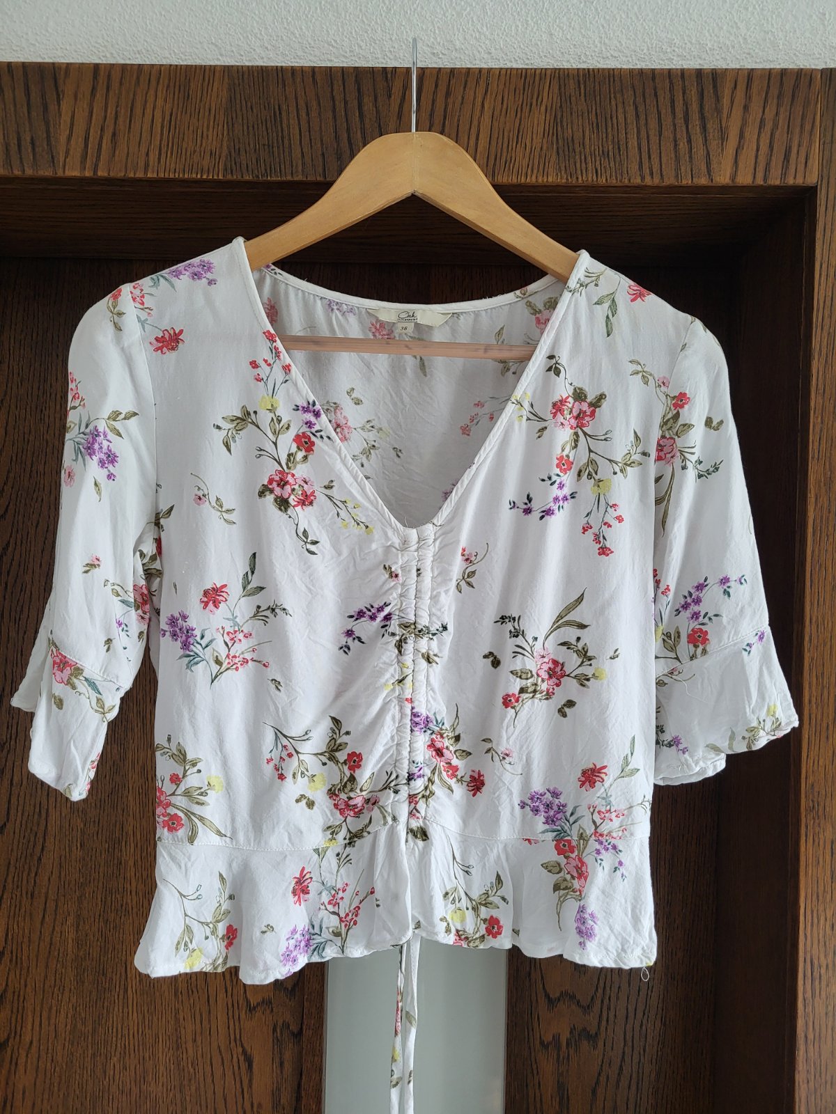 Blúzka s jemnou potlačou kvetov a motýlikov, materiál 100% viskóza, bez chybičky Nevymieňam.