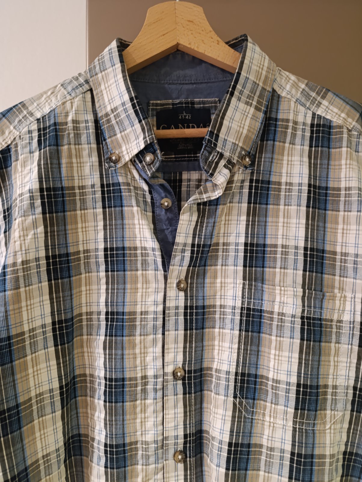 Farebná károvaná pánska košeľa, super na leto, ľahká, vzdušná. 100% bavlna, nenosená, super stav. Veľkosť L, dĺžka 73cm, šírka 2x55cm, rukáv 23cm. Značka Peacocks.