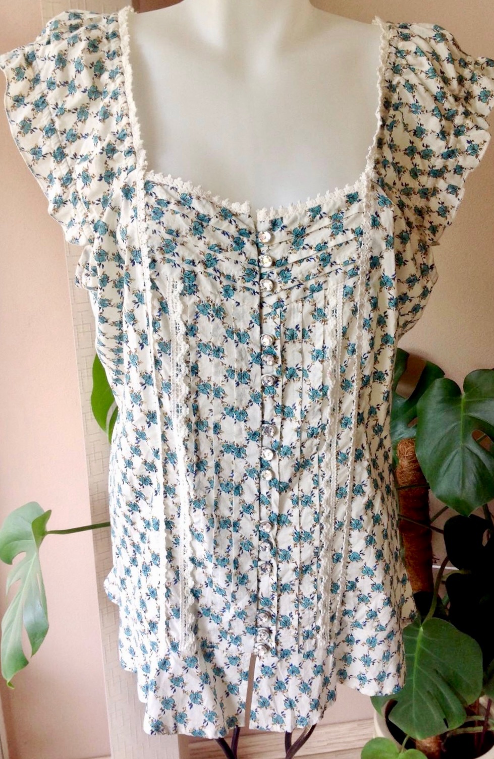 vzadu tenky opasok,krasne gombičky, drobny vzor modrych kvietkov