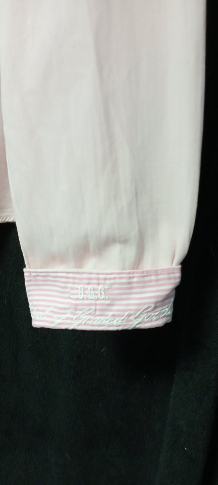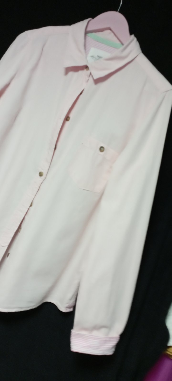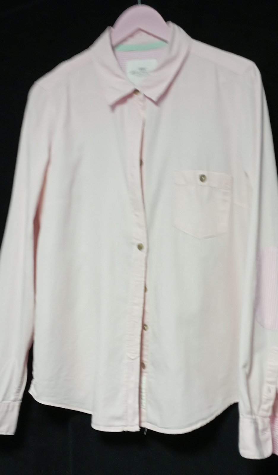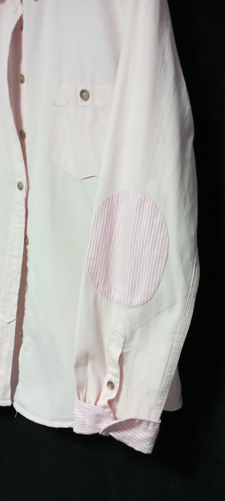 zaujímavá košeľa príjemná kombinácia, kombinovaná v oblasti lakťov a vnútro manžety s prúžkami, vpredu na ľavej strane vrecko, bez poškodení, minimálne nosené