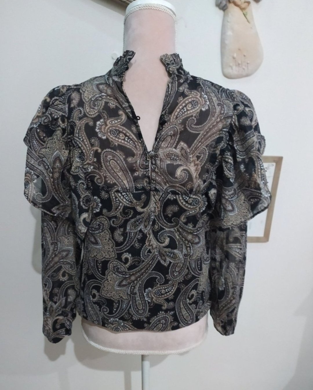 Krásna bluzicka zdobená volanom,zapínanie na gombíky cez chrbát