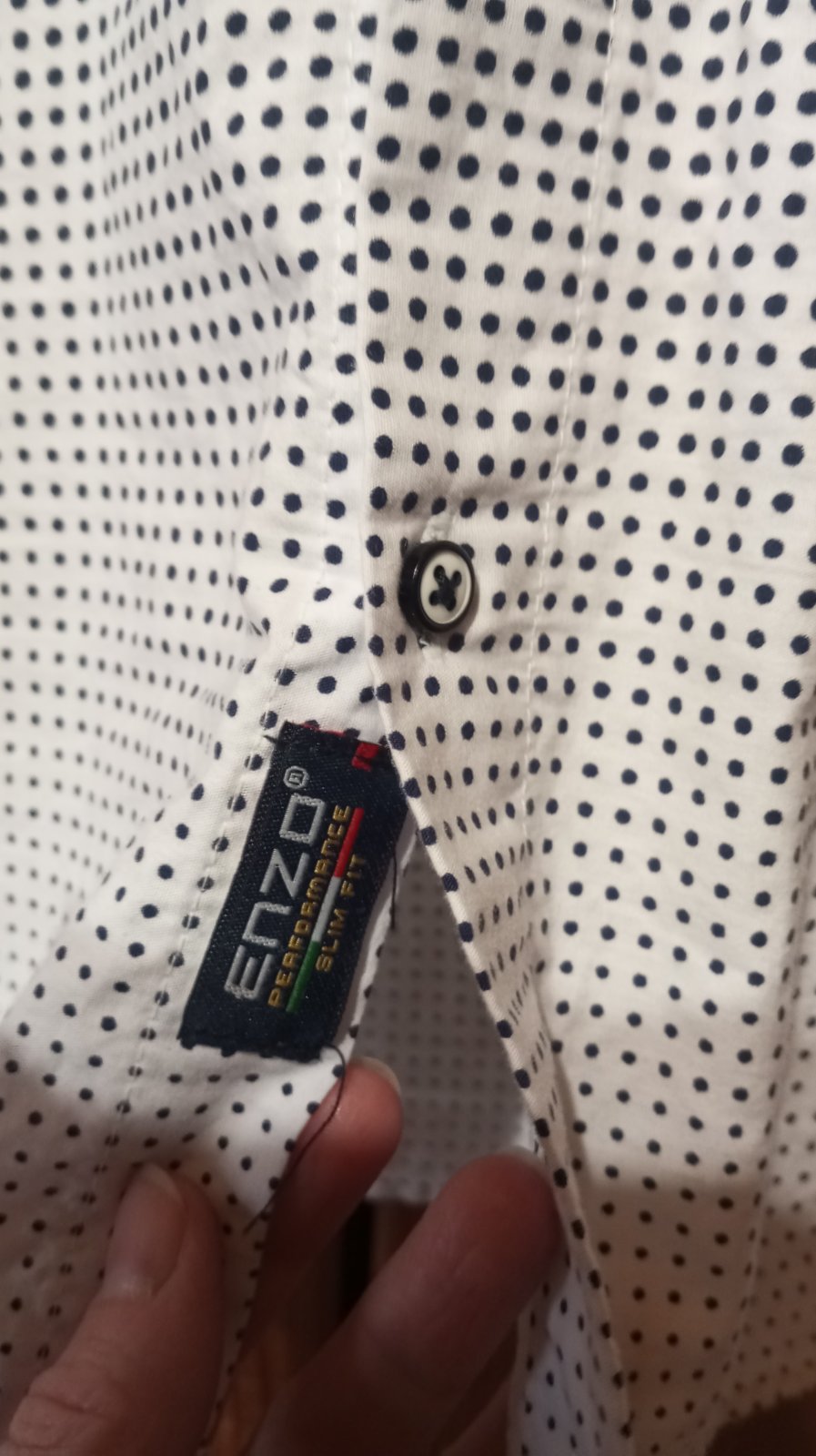 Krásna slim košeľa, ako nová len opratá, vyskúšaná. Žiaľ hneď úzka. Výrobca uvádza veľkosť L, ale podľa mňa je to M, riaďte sa mierami. Mám aj oblek, v prípade záujmu. posledná fotka, alebo viac fotiek v inzerátoch. Košeľa cena 7€