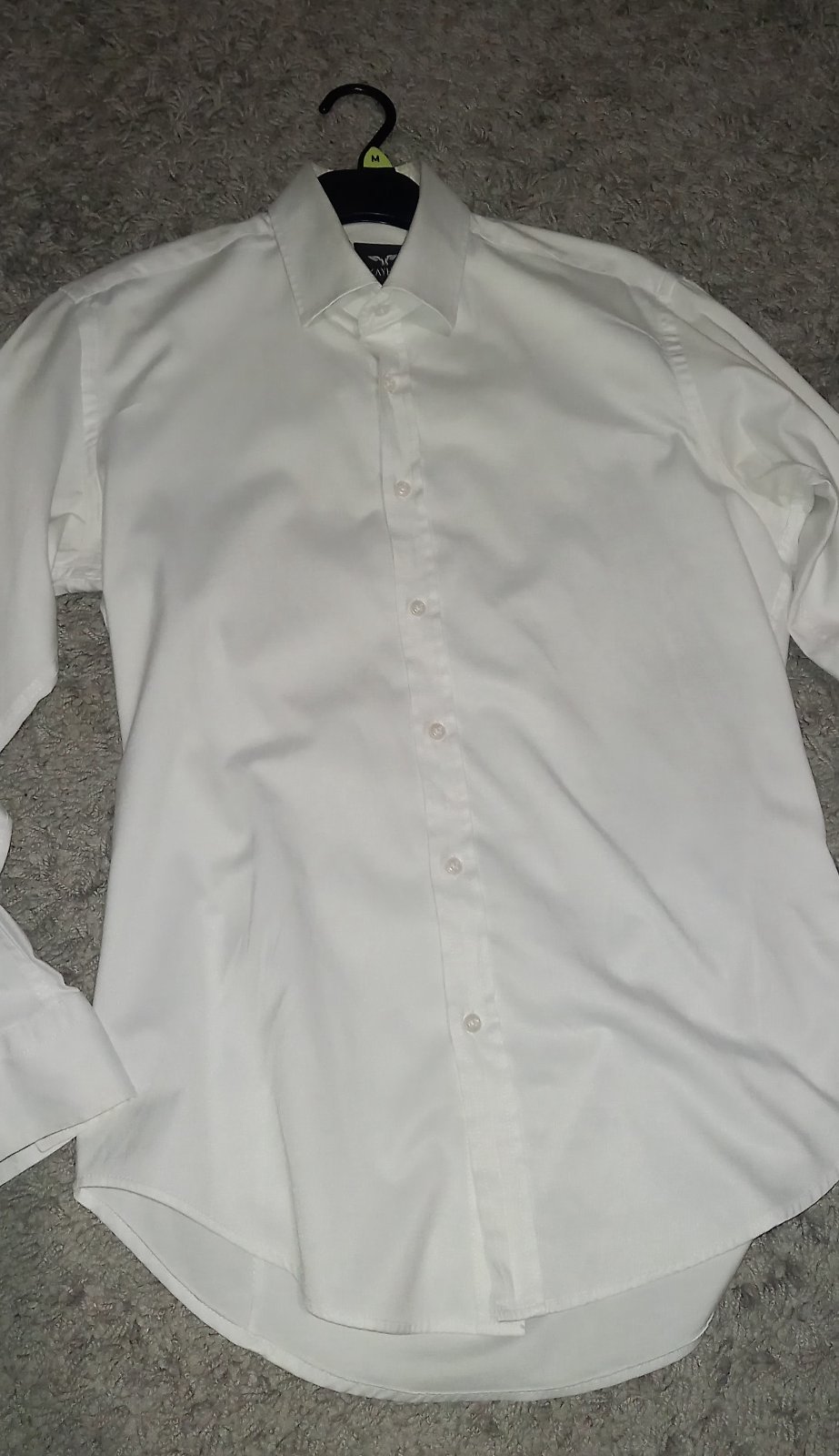 Pánska spoločenská biela košeľa, krásna biela, bez poškodení q žiadnych známok nosenia. Materiál príjemný, žiadna umelina