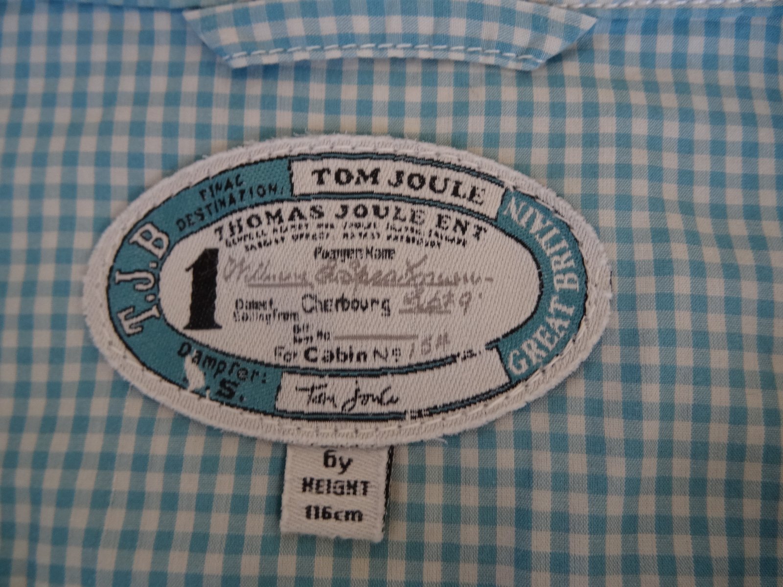 Krásna bavlnená košieľa Tom Joule, veľ.122, rozmery: dlžka 48cm, pod pazuchami 37cm, rukáv 43/34cm.