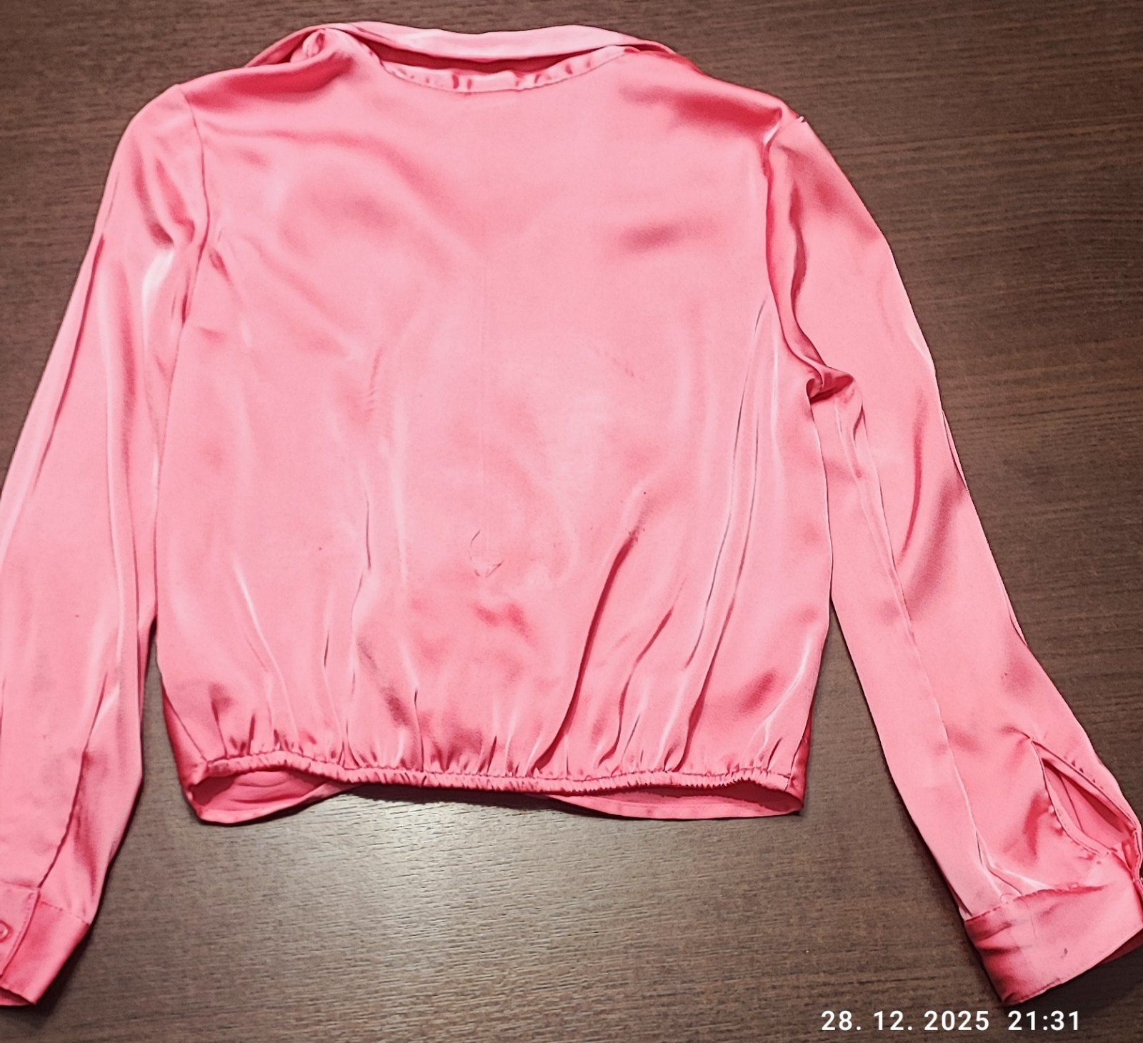 Blúzka je krásna ,parádu ešte narobí.Nosrnie je vidno hlavne na zadnom diela zatrhnutia a na manžete rukáva kúsok asi od perá.Neskusala som špeciálne čistiť.Odfotené a zohľadnené v cene.
