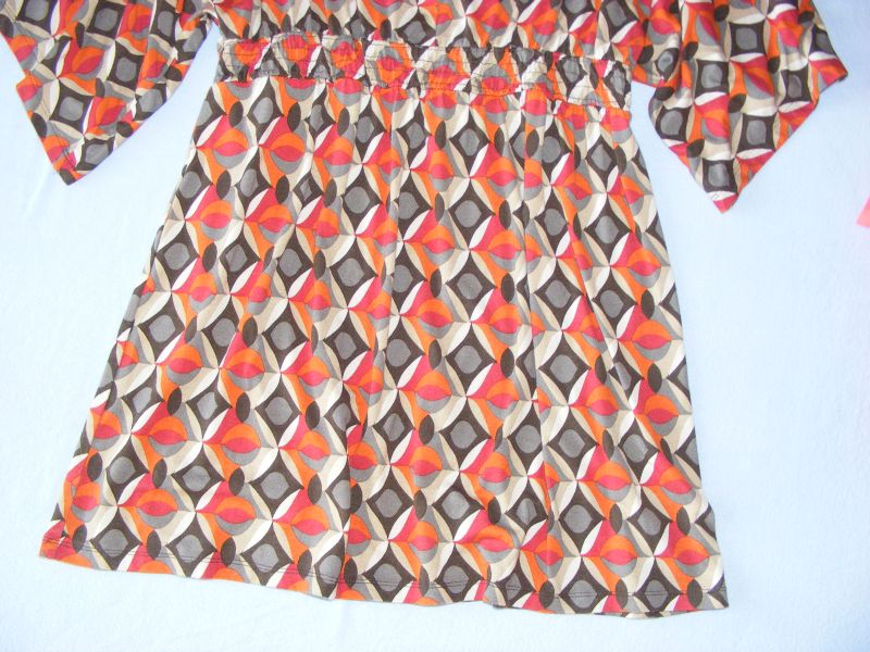Veľkosť nie je uvedená, sedí na S/M, premerajte: dĺžka 70 cm, gumička pod prsiami 34-45 x 2 cm, rukáv 36 cm.