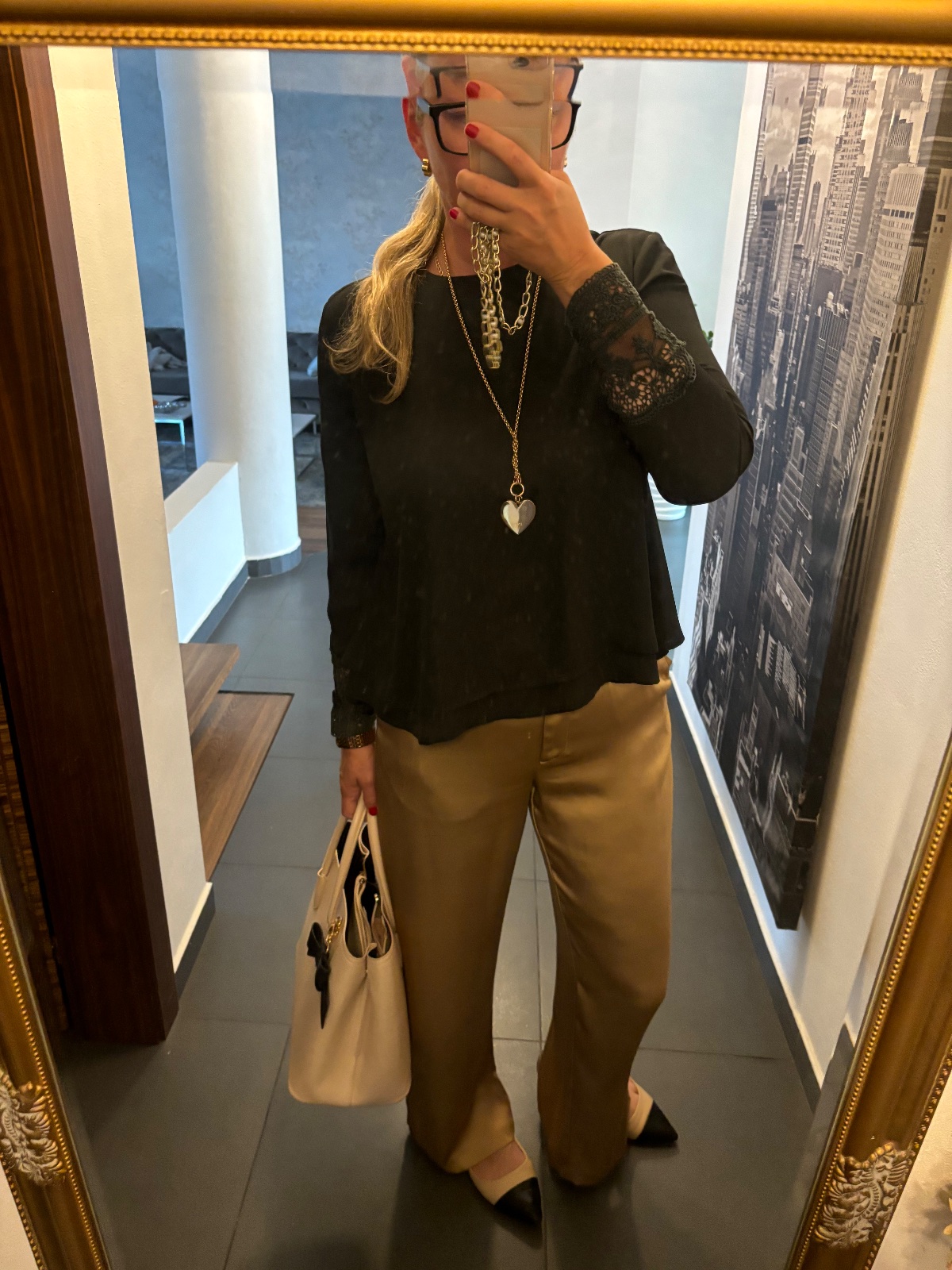 Málo nosená, rozšírený podšitý strih, zakryje nedokonalosti bruška. Na rukávoch manžetová krajka, praním zosivela, inak v super stave. Veľ. 40, RO: š 2x 54 cm, dl. 58 cm. Váha 225 g.