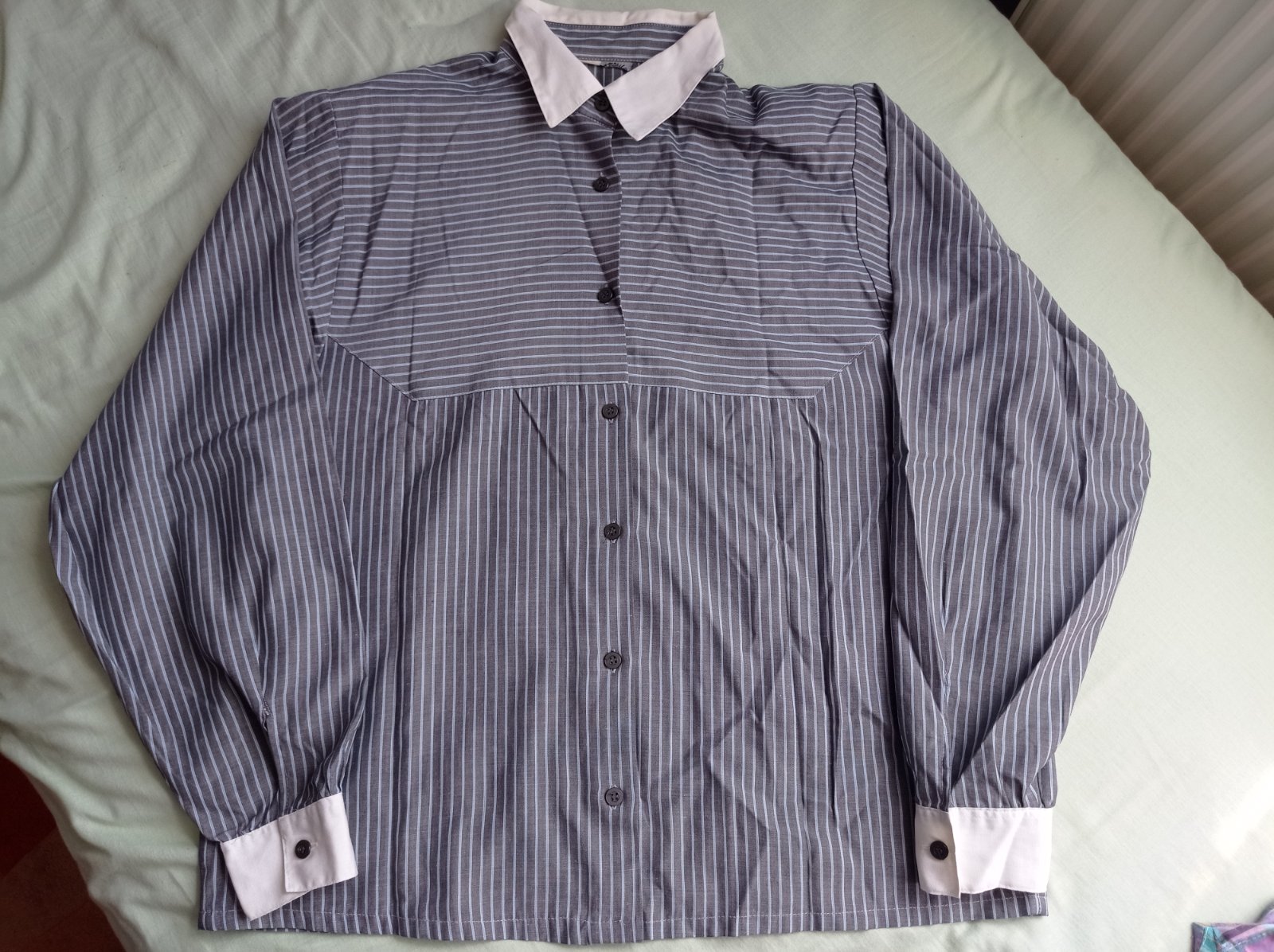 Predá túto blúzku veľkosti 42, dlhú 64cm, širokú 54cm v oblasti podpazušia, rukávy 52cm od podpazušia a 59 cm od ramena. Super stav, len sa mi trochu pokrčila po sťahovaní sa.