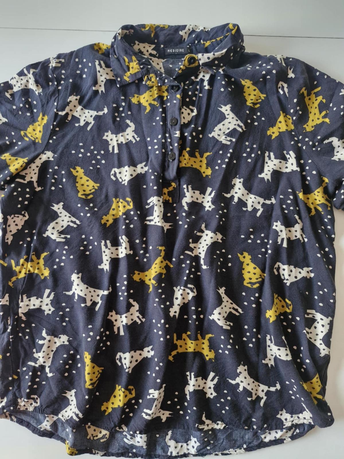 🖤 Košeľová blúzka značky N&P NUOPAI 👚 Veľkosť: L ✨ Krátky rukáv, jemne priesvitné vzory po celej blúzke 🔸 Ľahučký materiál – 100 % polyester, priedušná a pohodlná na nosenie 🌸 Elegantný a univerzál...