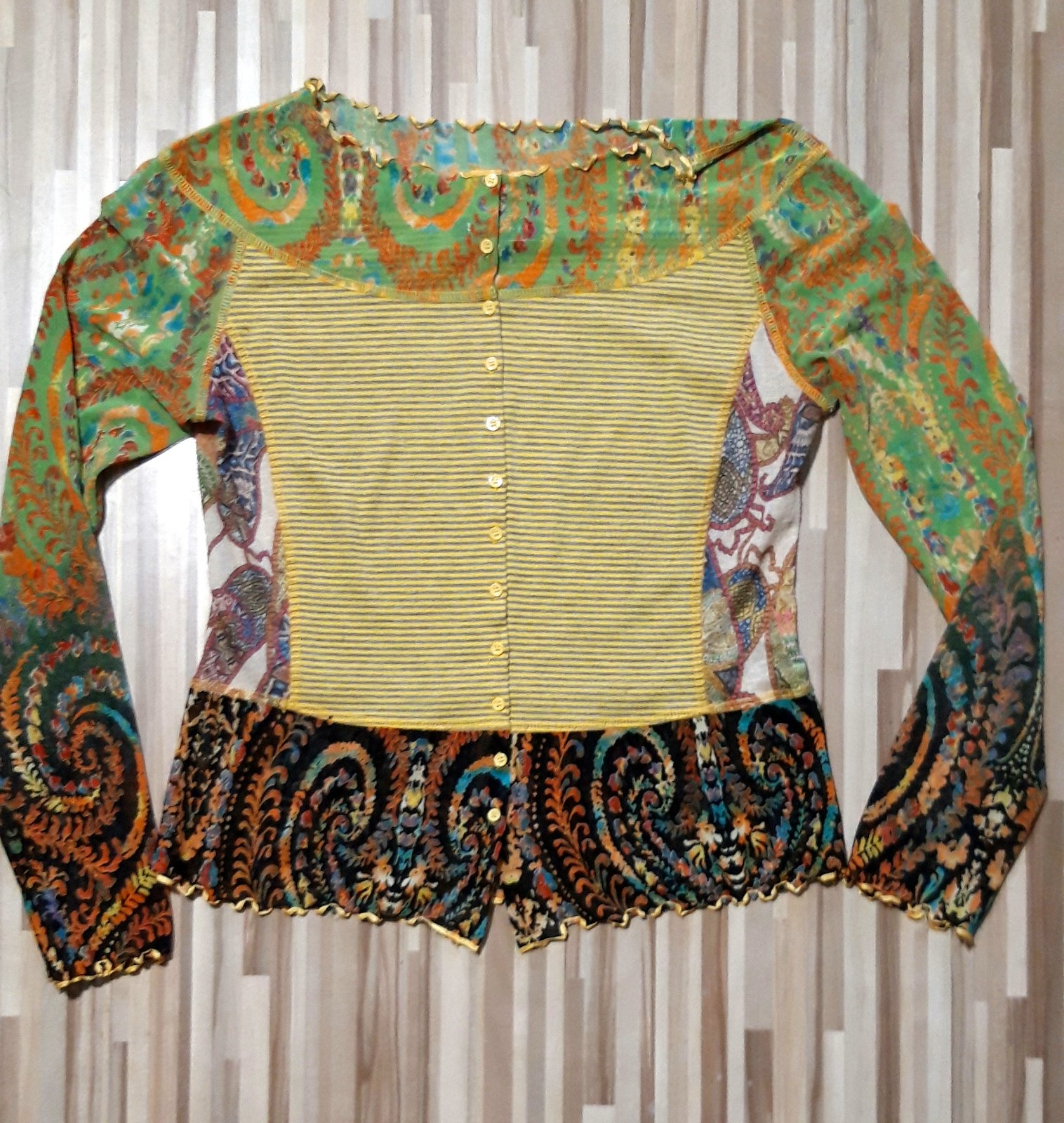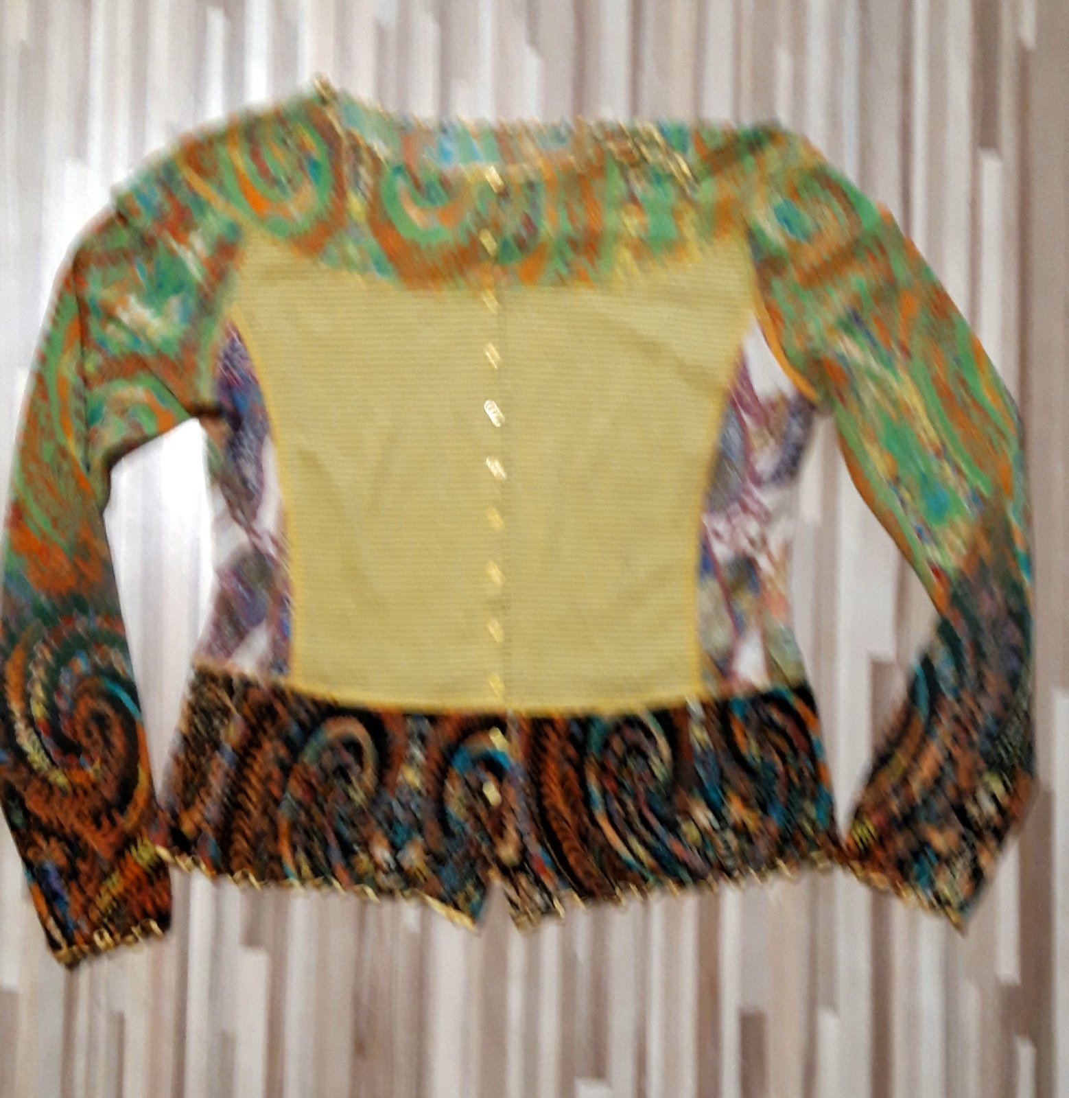 Jemnučka bluzka velkost M/L ,dlha je 59cm ,rukav od krku 72cm a cez prsia 46x2