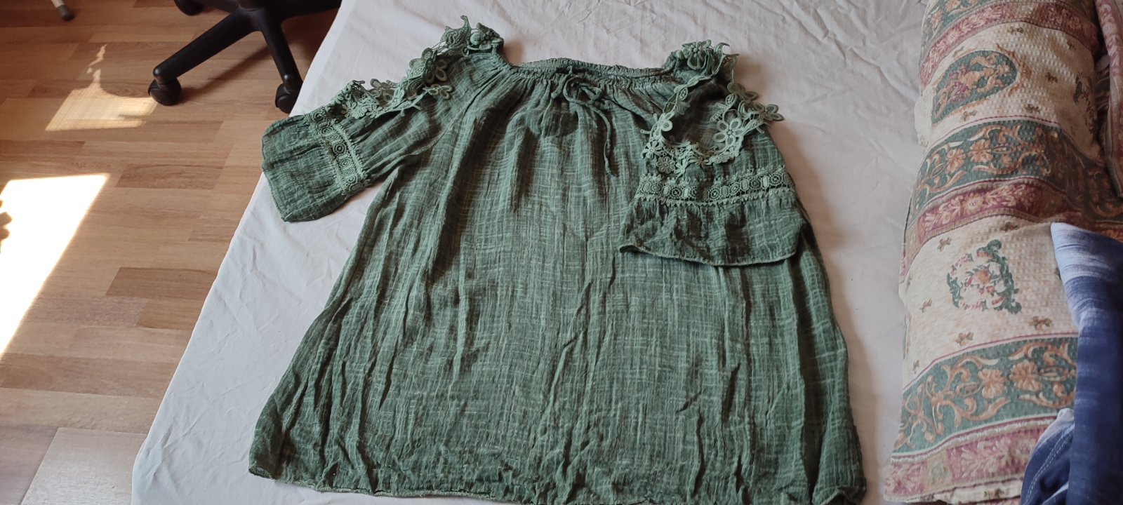 Predám málo používanú ľahučku blúzku krásnej bledo zelenkavej farby zo zmesového materiálu, rovného strihu, bez poškodenia. Pri nákupe viacerých vecí z môjho bazariku darujem ZDARMA