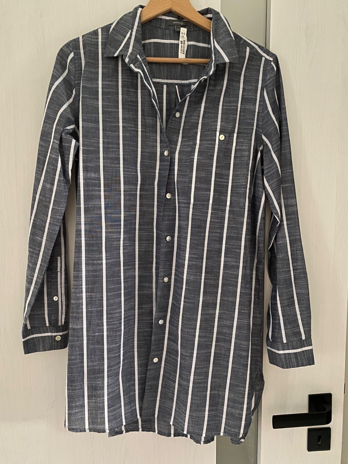 Dobrý deň predám dámsku košeľu s dlhým rukávom na gombíky veľ.S oblečená max 3x v top stave ako nová. Miery: cez prsia: 2x44cm v páse: 2x 37cm dĺžka:61cm Cena 5€+poštovné.