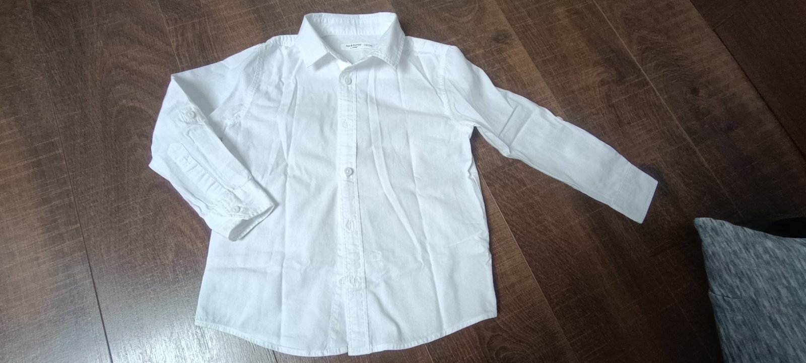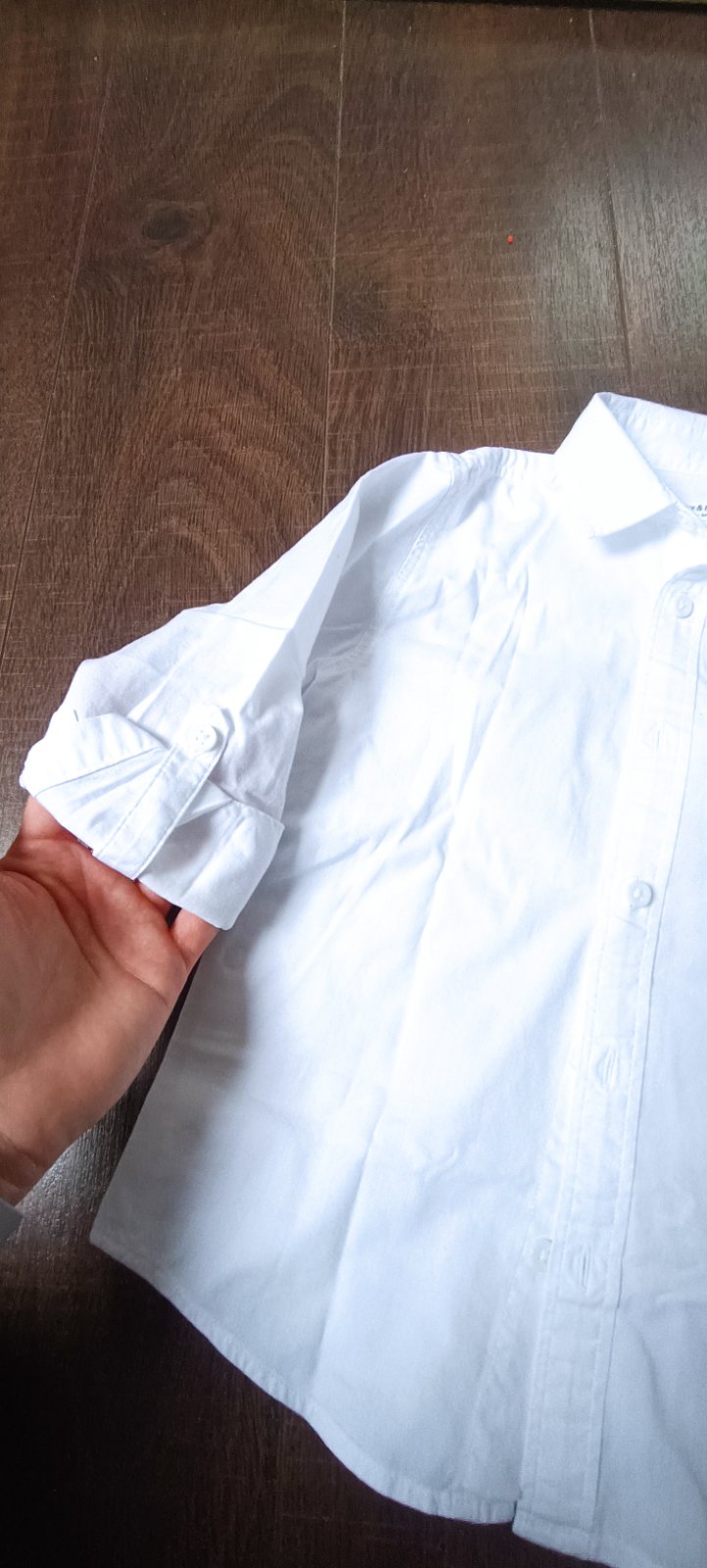 Čisto biela košeľa, vzatá možno 2 krát,nezaprana, bez fľakov, rukáv sa dá vypnúť na kratší... rozmer dĺžka 41,5 CM , rukáv 36 CM , šírka popod pazuchy 34 cm