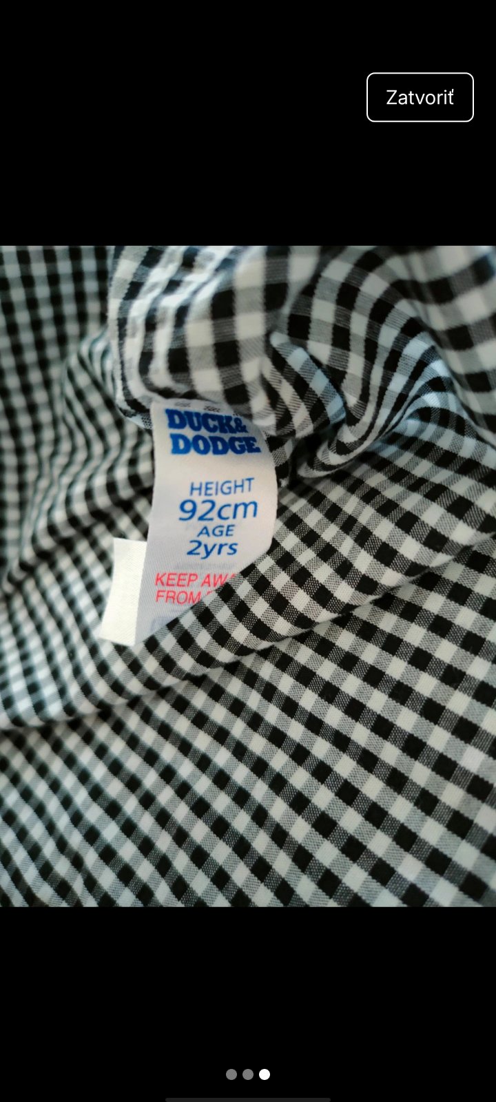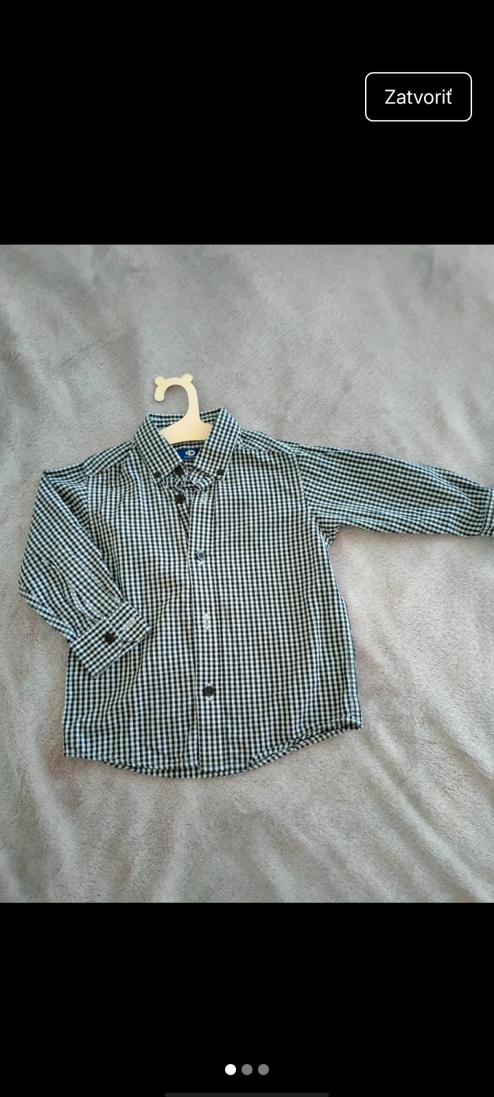 Košeľa teplejšia, taký hrubši material. Bez poškodeni, max. žmolky z prania. Cena symbolicka, aby ešte niekomu poslužila :-) Velkost tipujem 92/98. Štitok je odstrihnuty. Miery (su aj nafotene): ...
