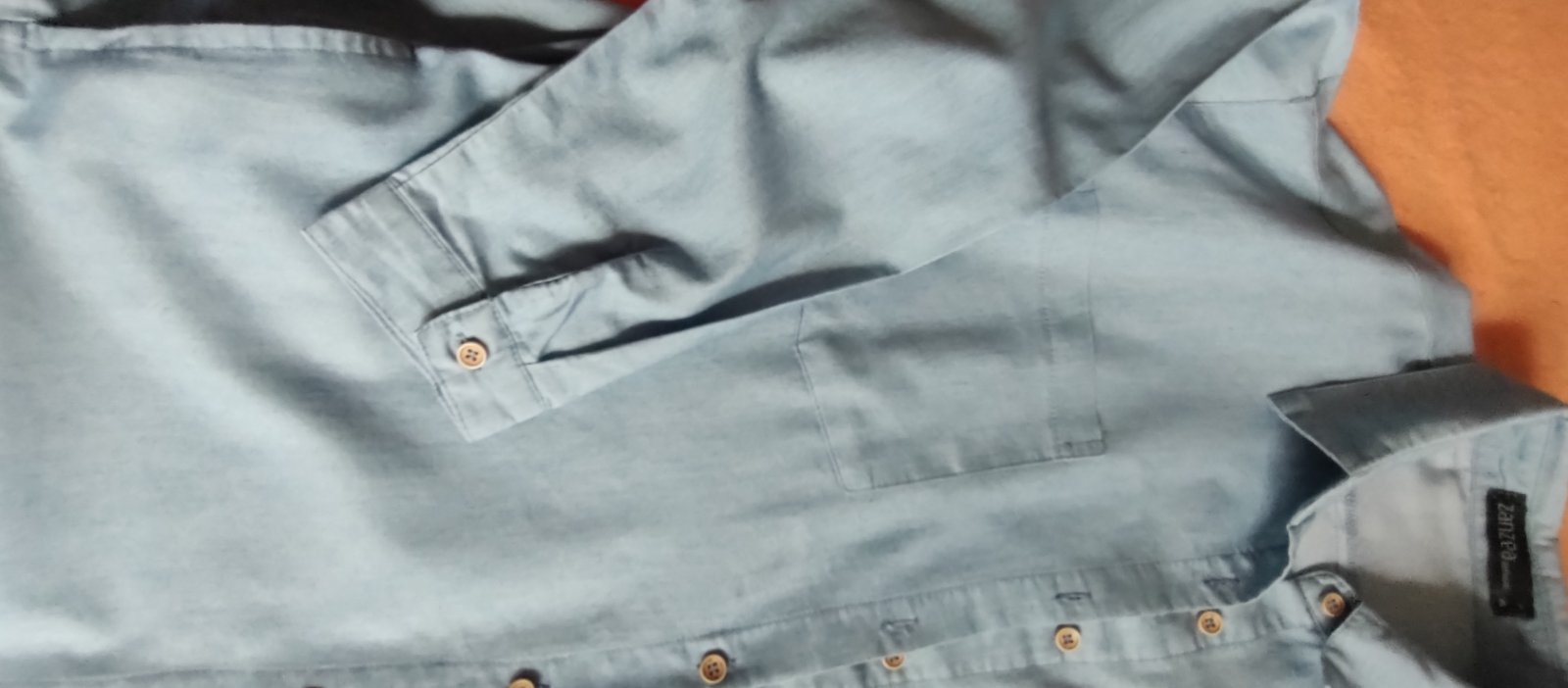Košeľa je vo výbornom stave. Má štyri vrecká dve na prsiach a dve sú ukryté v bočných švoch.