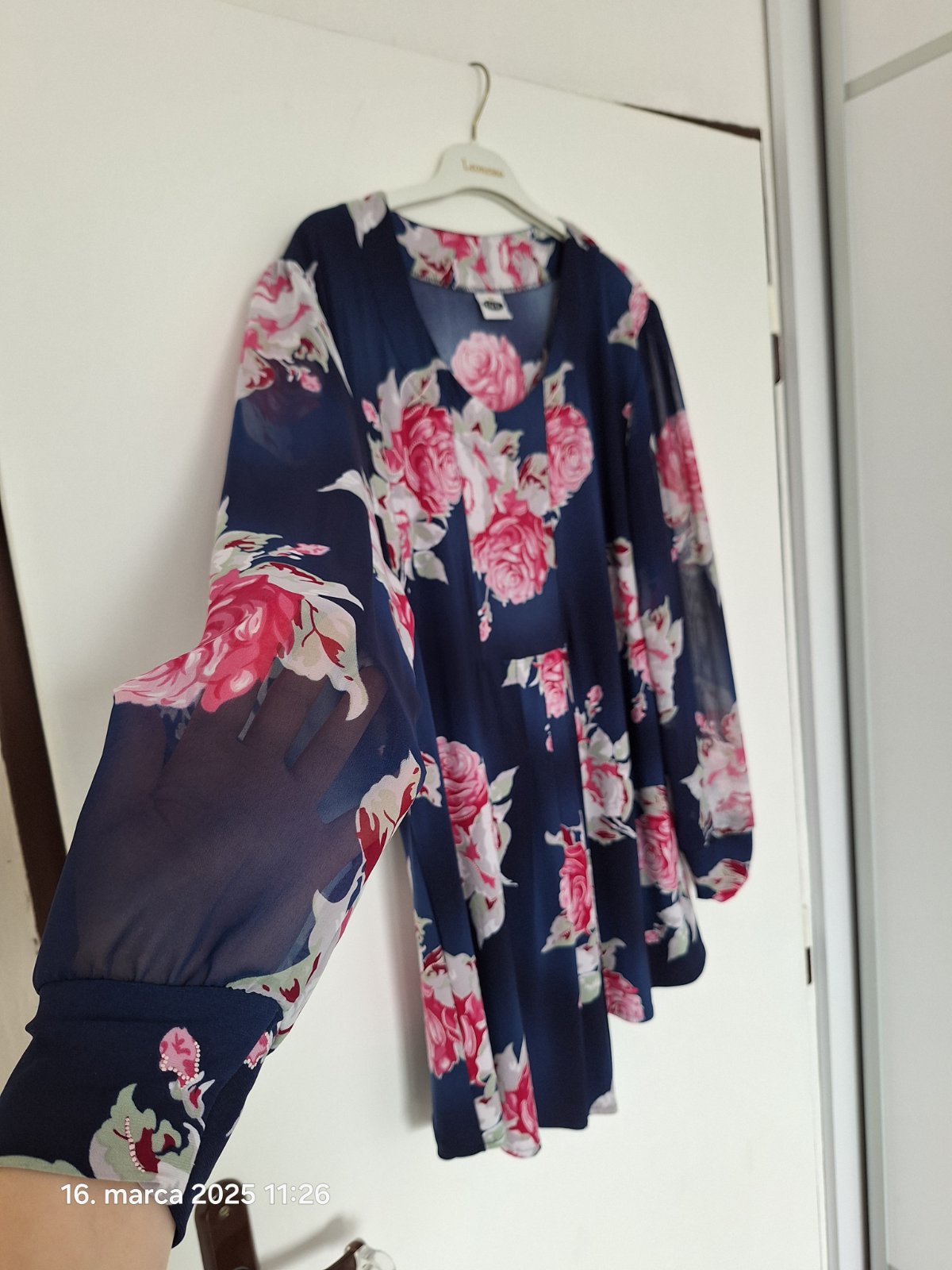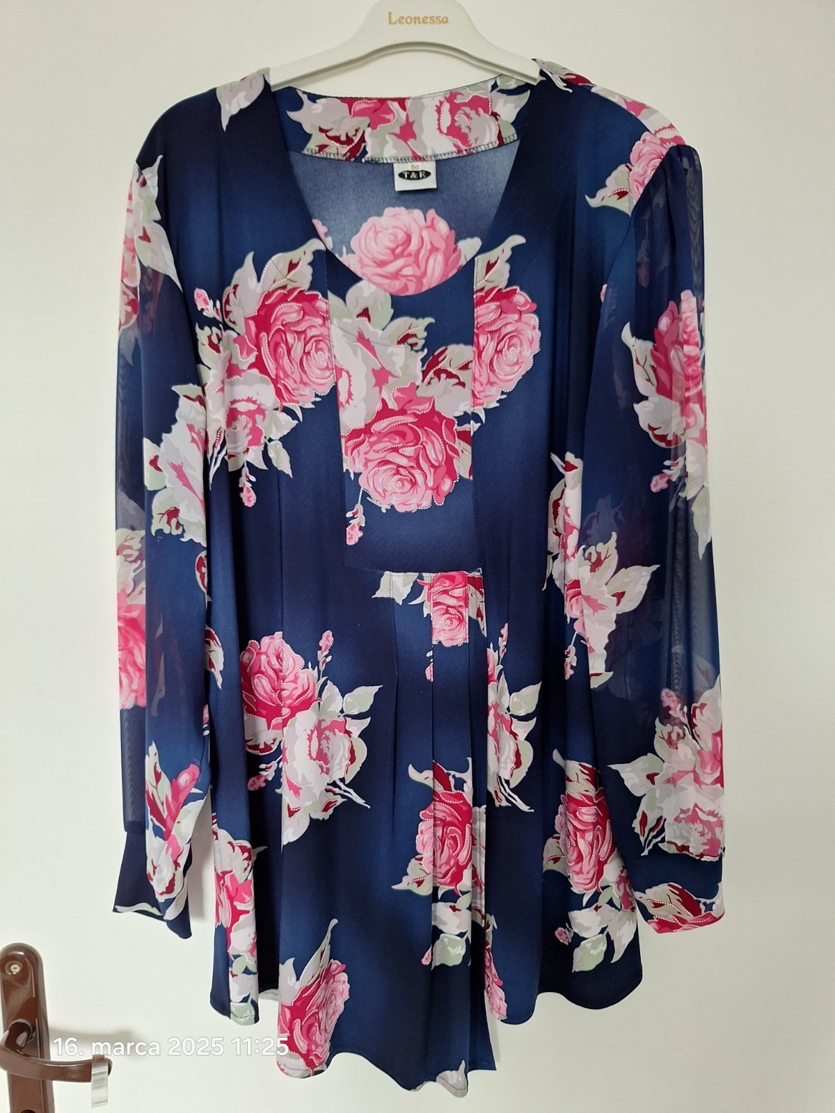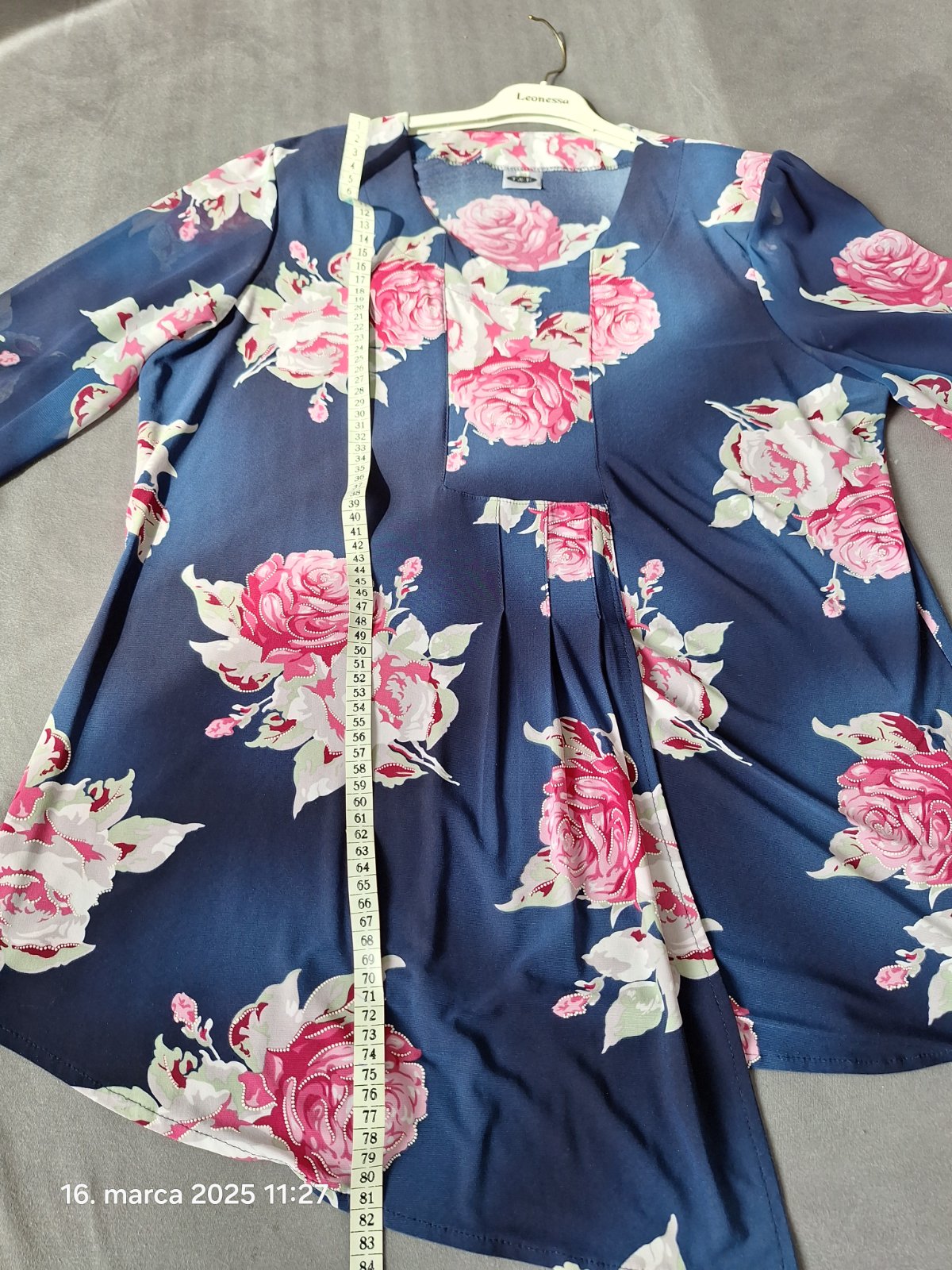 Predám dámsku tuniku/top na spoločenské príležitosti. Podklad je tmavomodrý, rukávy sú jemne priehľadné. Oblečený len zopárkrát a je bez chýb. Rozmery sú priložené na foto.
