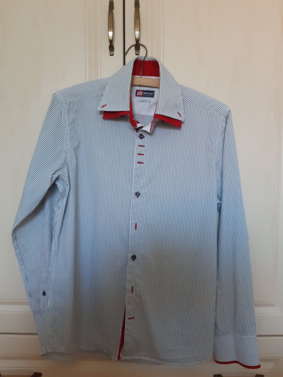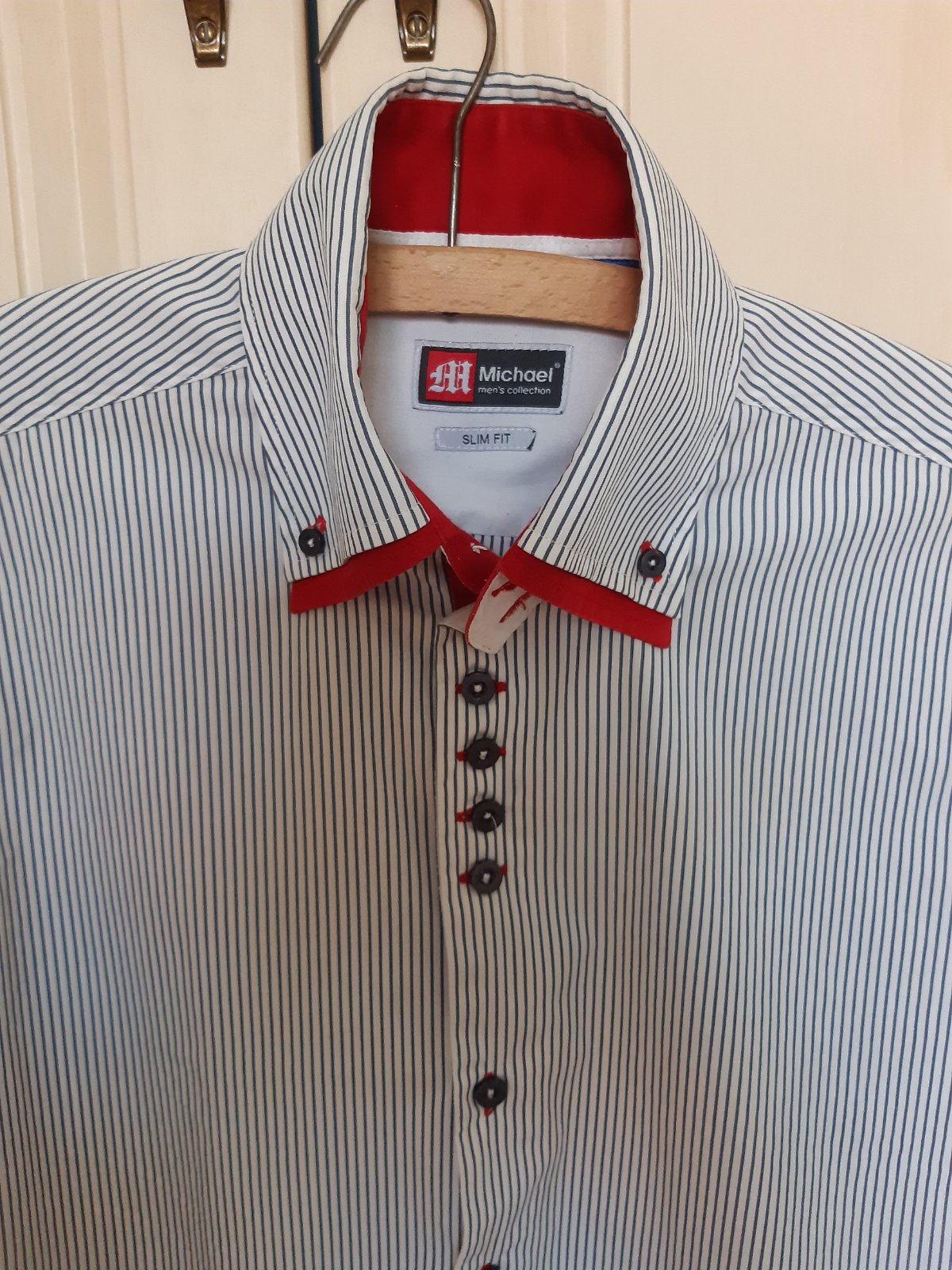 Kvalitna kosela s peknymi detailami. Strih slim fit. Velkost sedi. Prilezitostne nosena, stale v super stave.