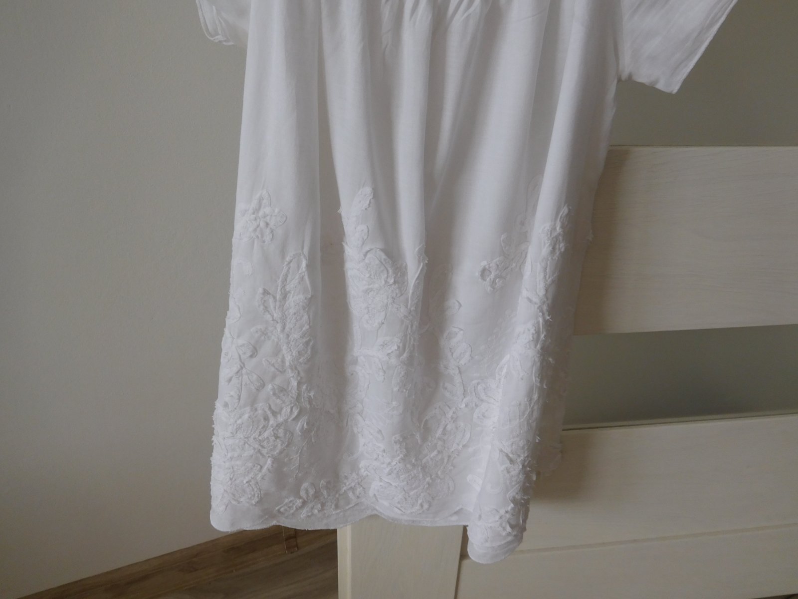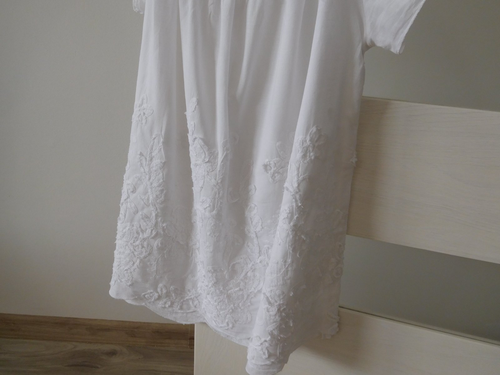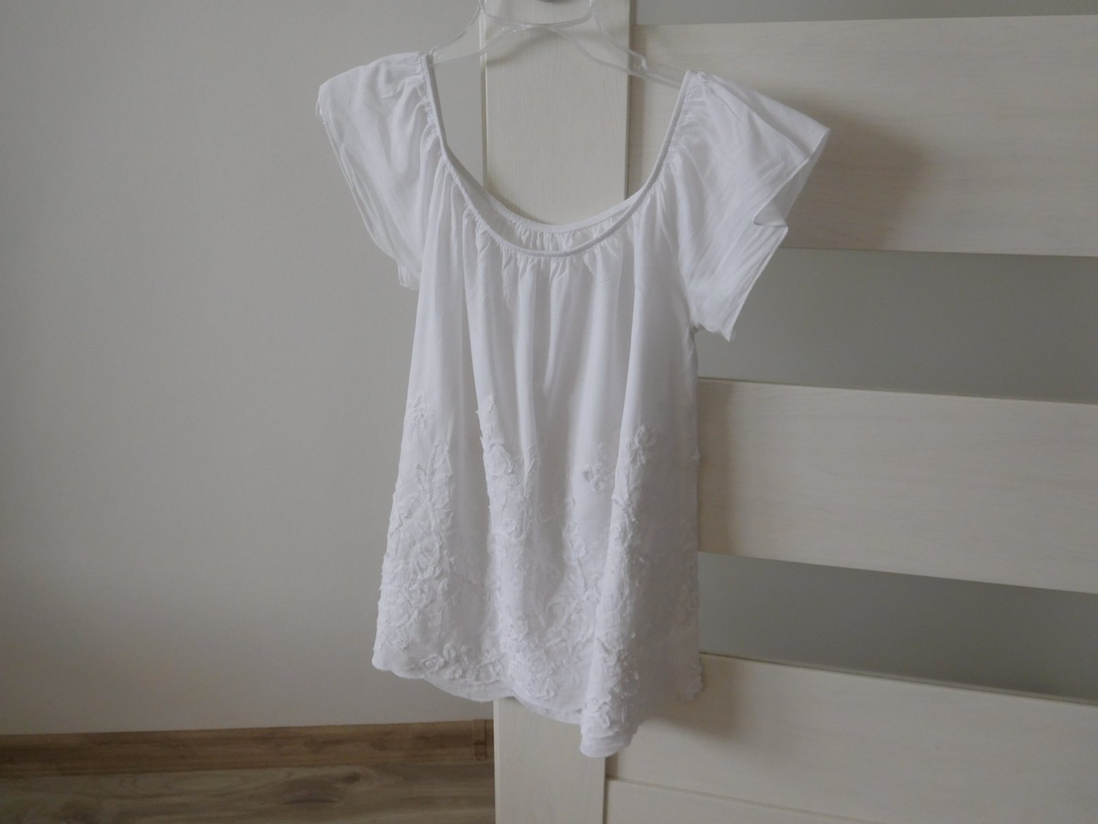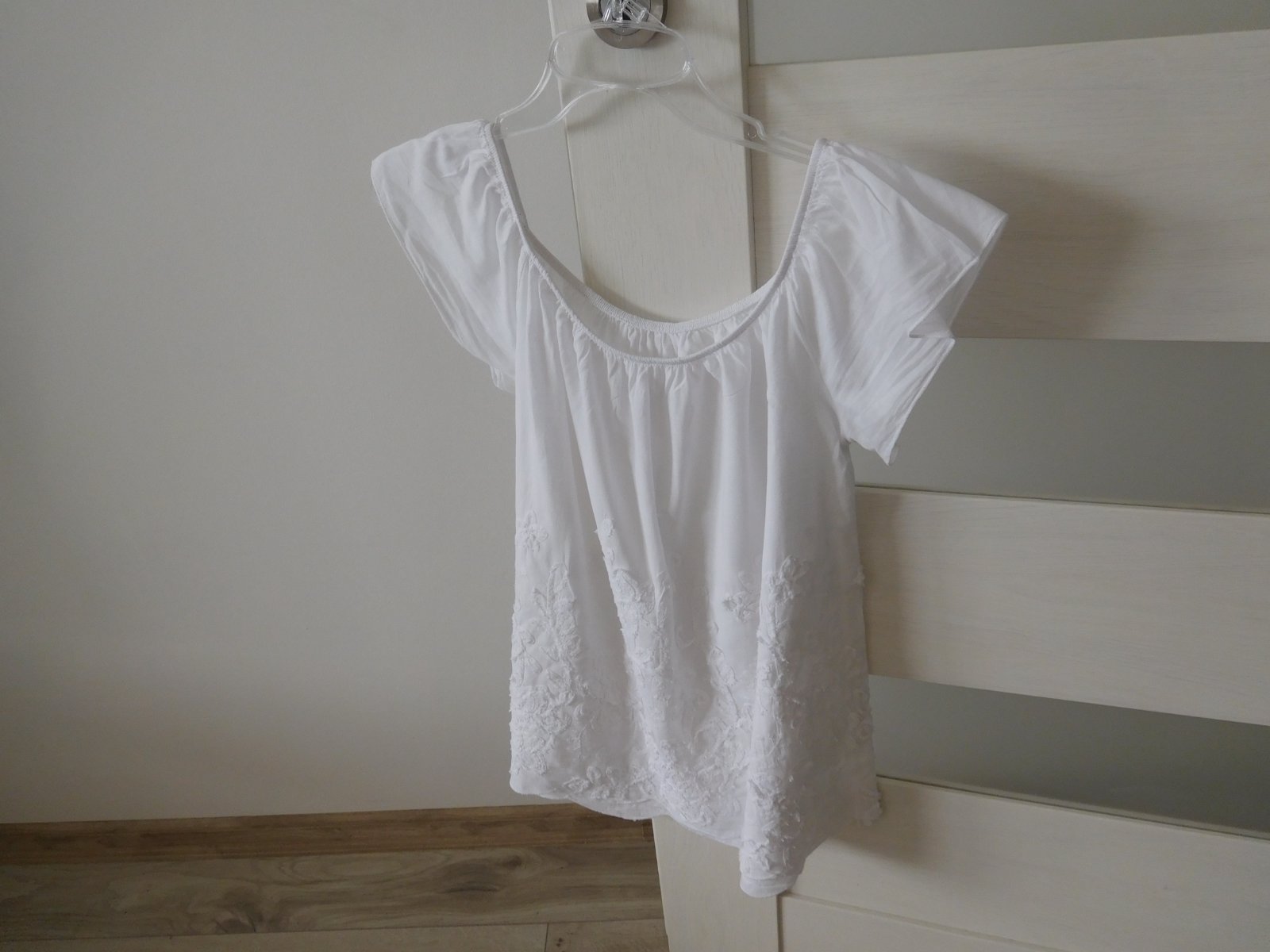 Ponúkam na predaj blúzočku bielu viď foto,dlžka blúzky---62 cm, rukávček krátky, blúzka voľného stryhu.Blúzočka je nepoškodená čistá,voňavá,veľmi dobre nositeľná,veľmi dobre ošetrovateľná.