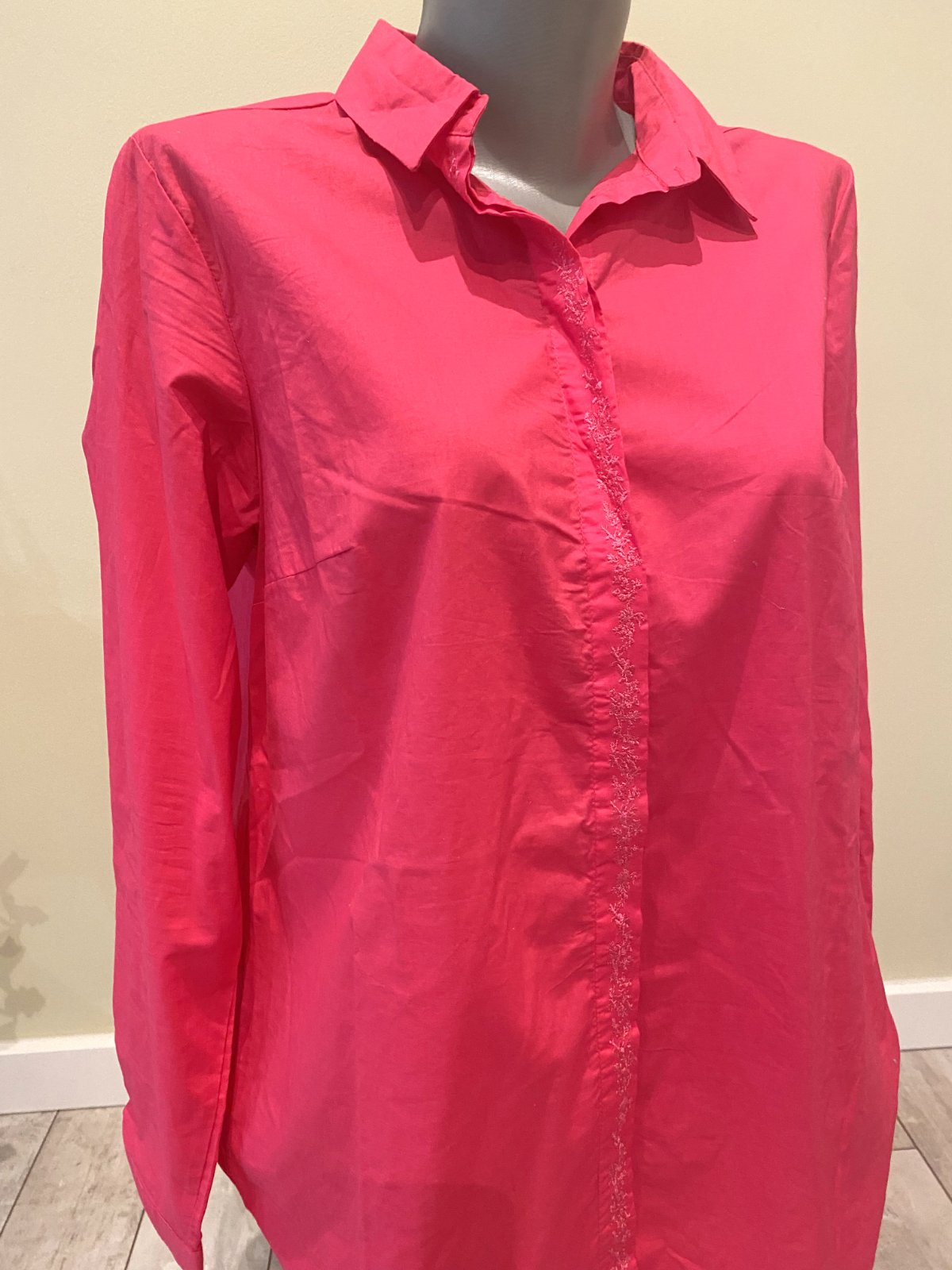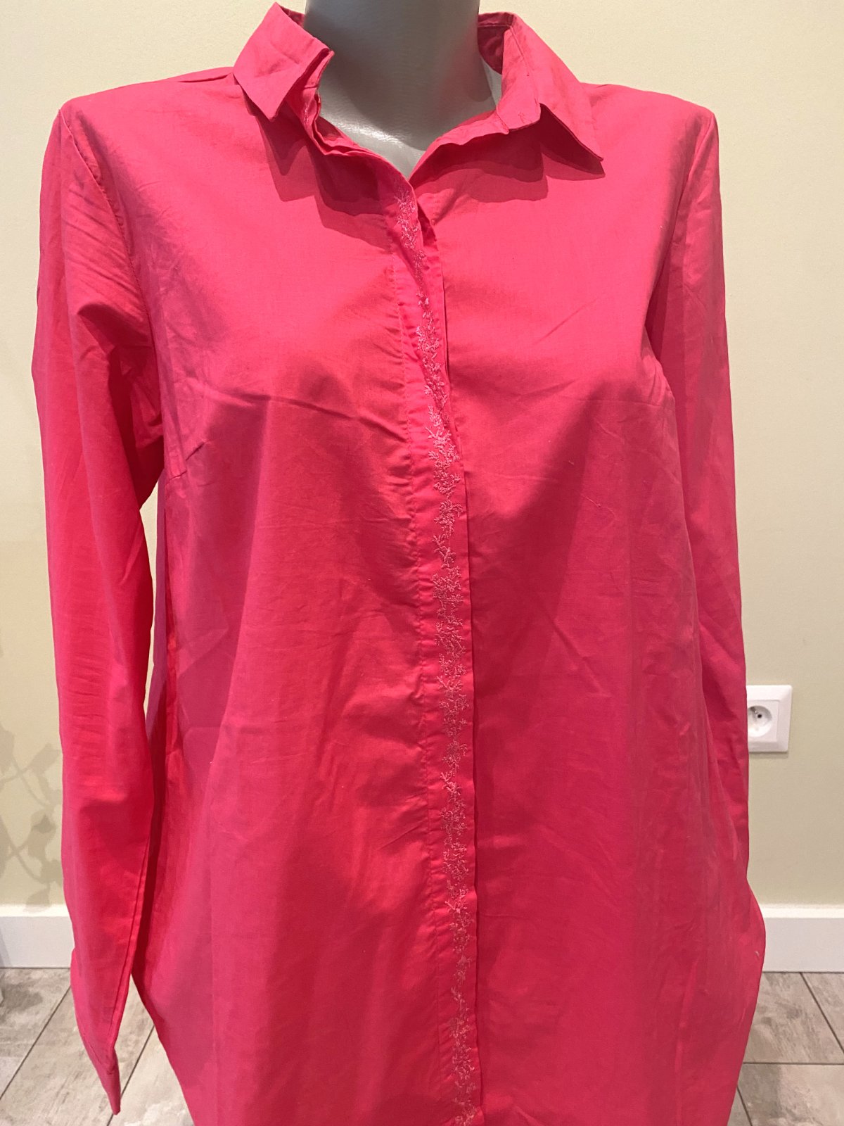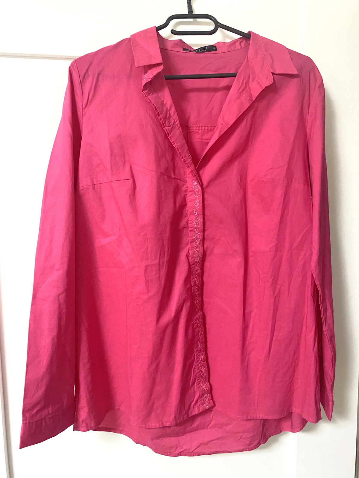 Dámska blúzka košeľa... v tmavoružovej farbe... s ozdobnou vyšívkou ... výborný stav...značka: MOHITO... veľ. 40 - dlžka 72 cm, šírka pod pazuchami 53 cm, šírka pás 52 cm