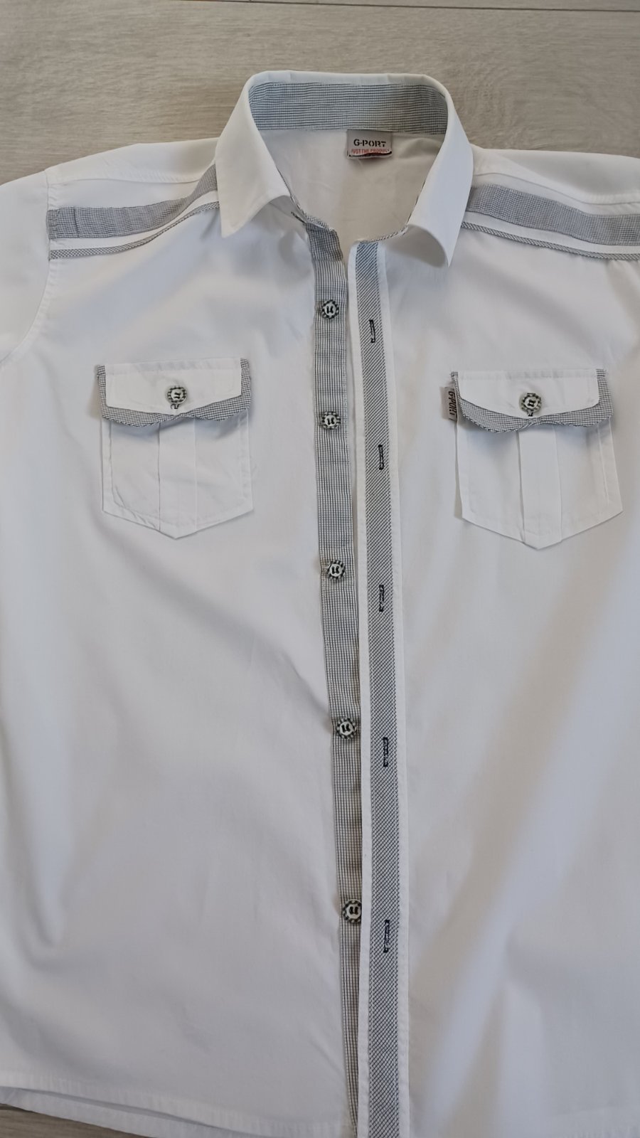 Predám najmenšiu pánsku alebo chlapčenskú košeľu vel.S-M dlžka:62,5cm šírka cez prsia 48cm.Super stav.