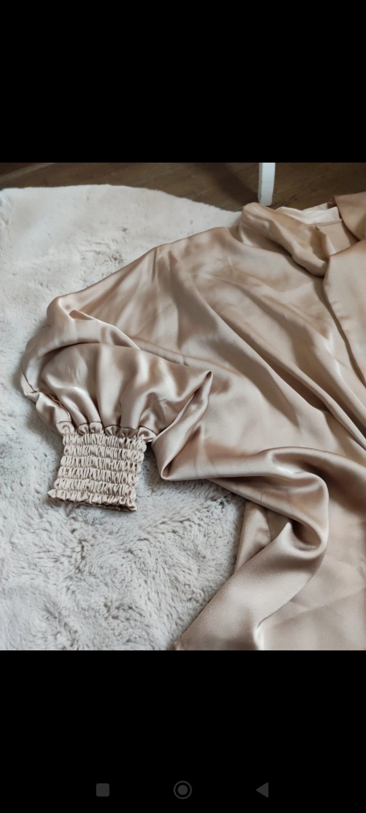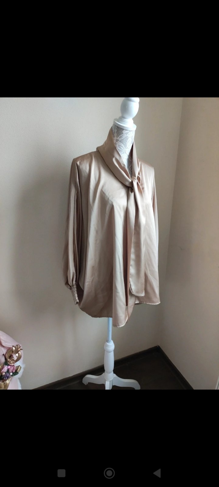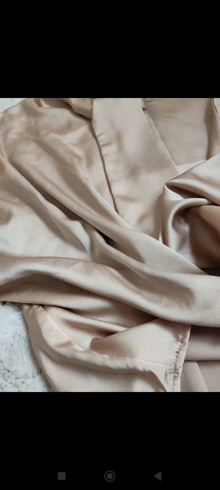 Saténová blúzka s efektom vodopád. Zlato-hneda farba. Oblečené asi 1x. Z Talianska. Pod pazuchami 51cm.