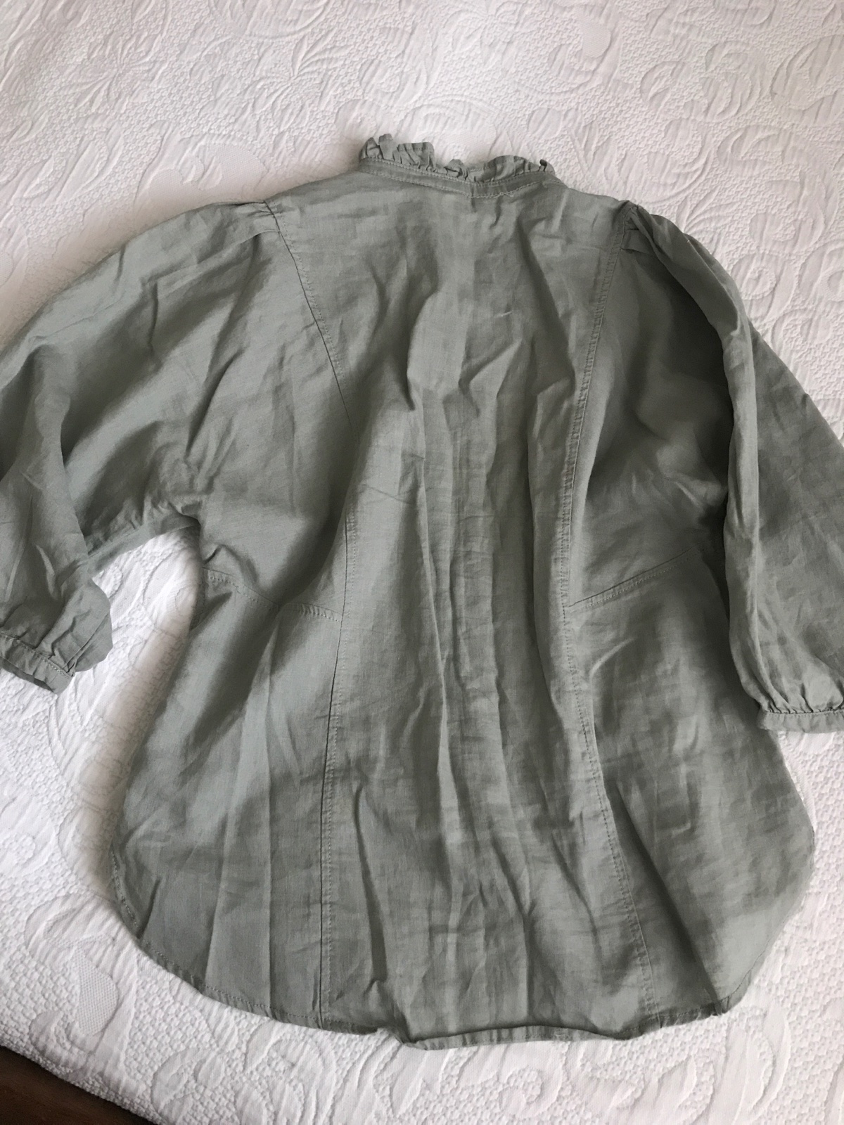 Krásna pastelovo zelená blúzka s aplikáciou okolo krku. Bol to obľúbený kúsok, nosila som pod ňu biele tielko :)