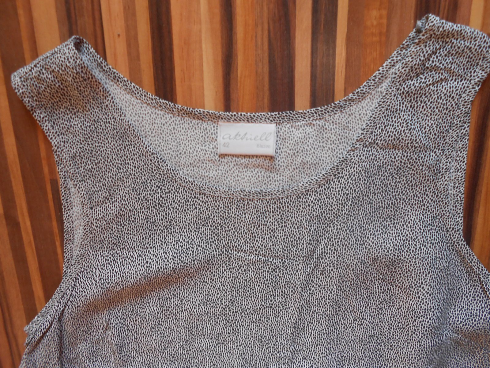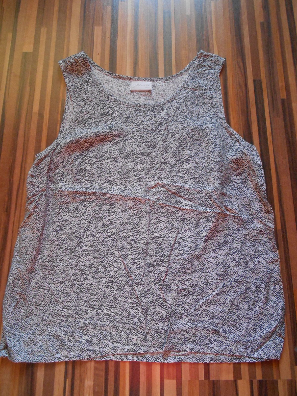 Blúzka má príjemný nekrčivý materiál, mäkký, je vo výbornom stave, bez dier, fľakov, žmolkov, šírka v podpazuší 50cm x 2, dĺžka predného dielu 61cm, cena + poštovné. (K)