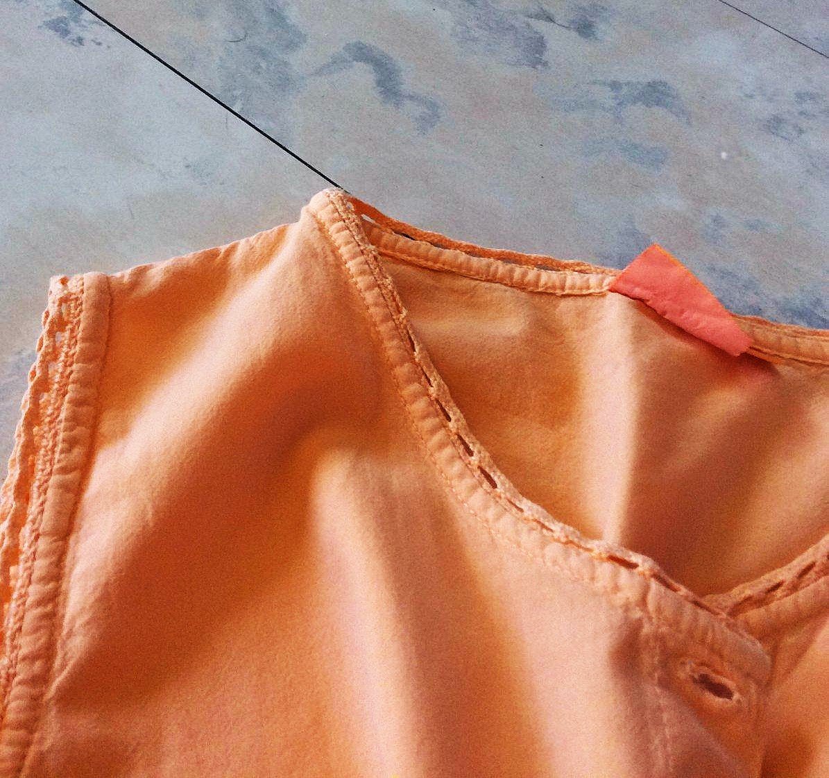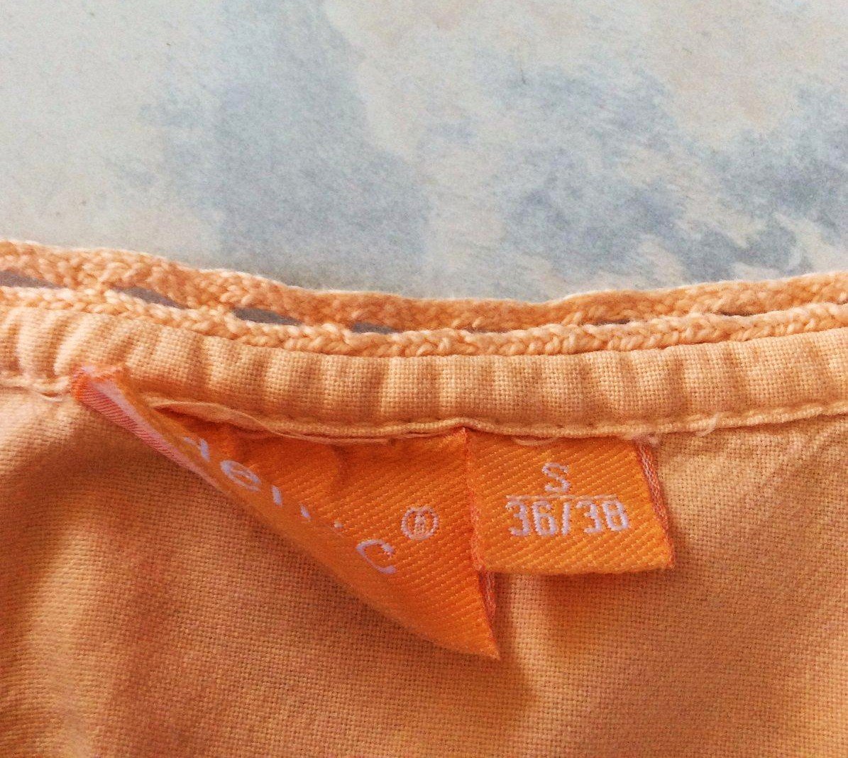 jednoduchá jemná kvalitná košeľa/ blúzka bez goliera , farba bledo marhuľová,v top stave - neznosená,uvedená veľkosť S,ale podľa rozmerov sadne na M/S, nosí sa voľnejšia,krásna štruktúra materiálu....