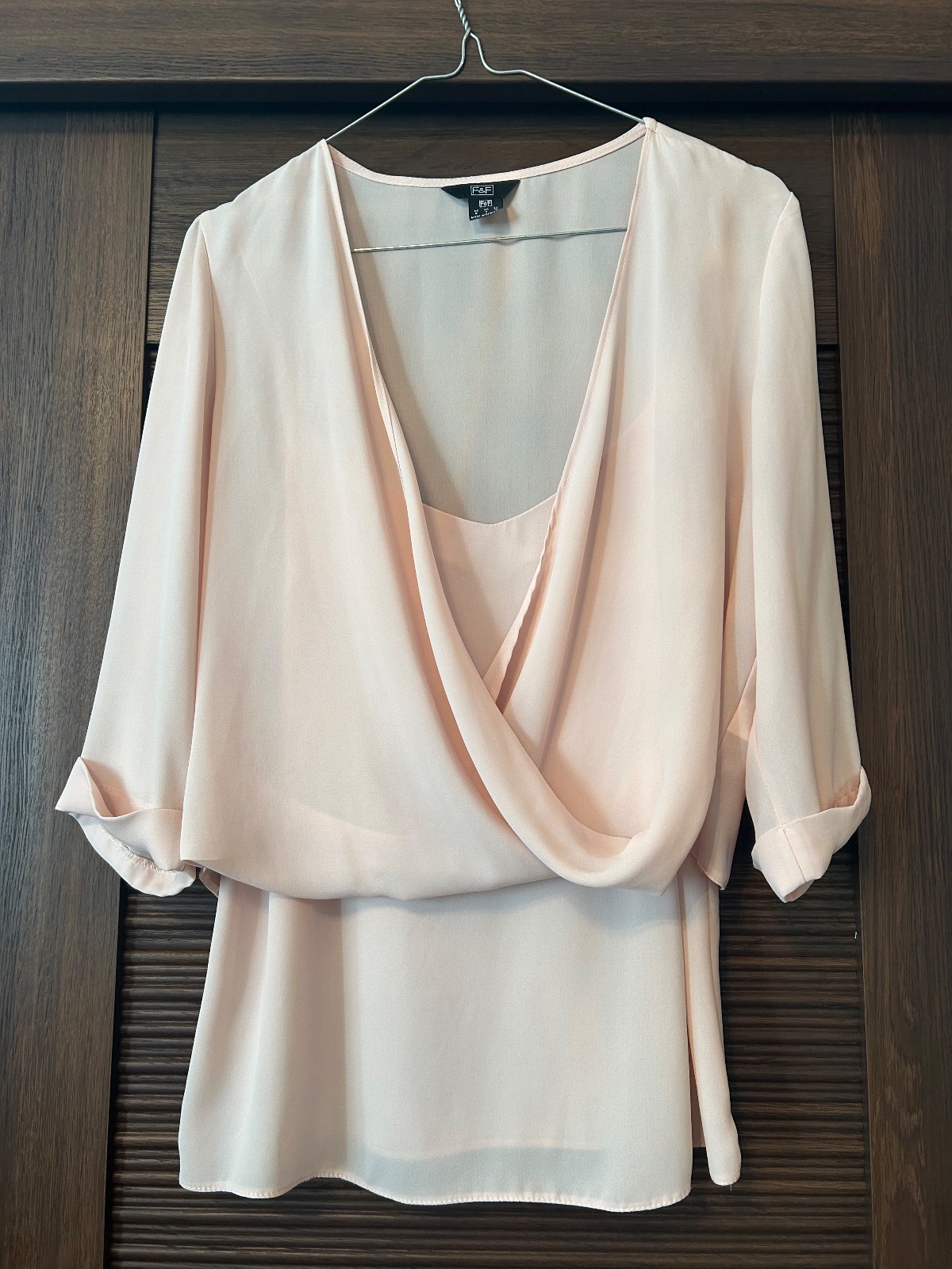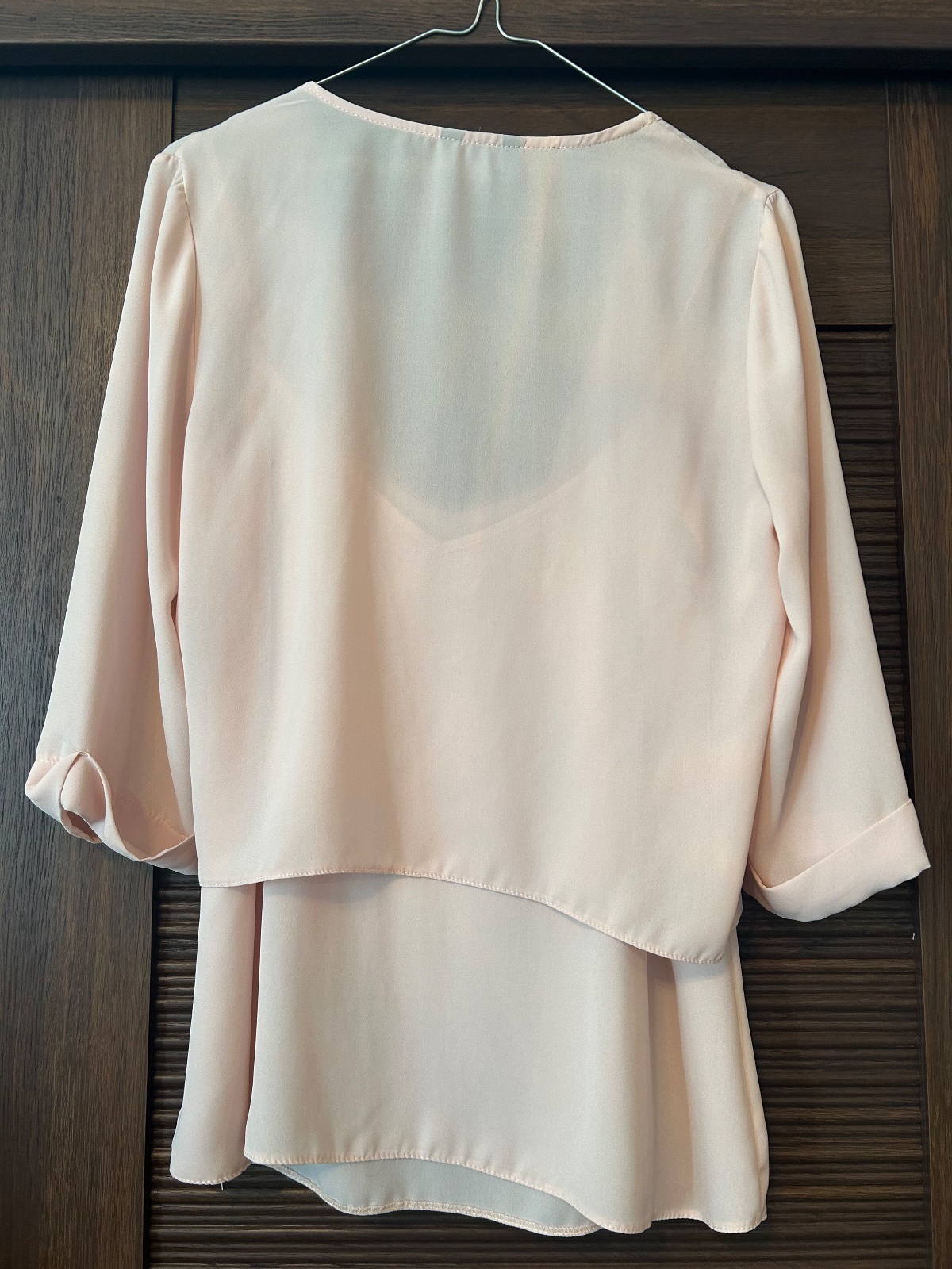 Blúzka pudrovo ružová, pozostávajúca z 2 kusov. Tielko na ramienka a vrchný diel. Krásne sedí, padáky materiál. Dĺžka