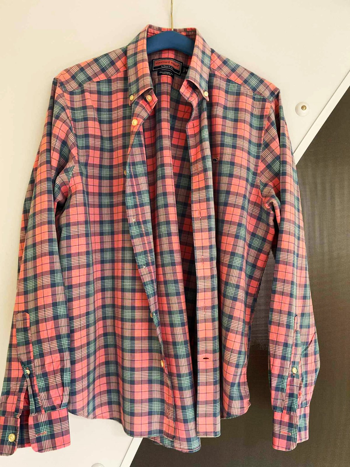 krásna neznosená bavlnená košeľa americkej značky Vineyard vines,super vypracovaná,100% bavlna,vhodná aj na leto s vykásanými rukávmi,dlžka = 71 cm,rukáv = 64 cm, šírka = 60 x 2 cm,nosí sa voľná,na č. L/XL