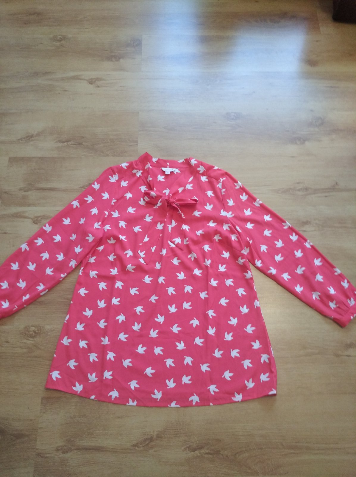 Perfektná blúzka z polyesteru a viskózy, v super stave! V skutočnosti je viac lososovej farby, rukávy nie sú podšité. Dĺžka - 70 cm, šírka - 2x 55 cm, rukáv od krku - 72 cm.