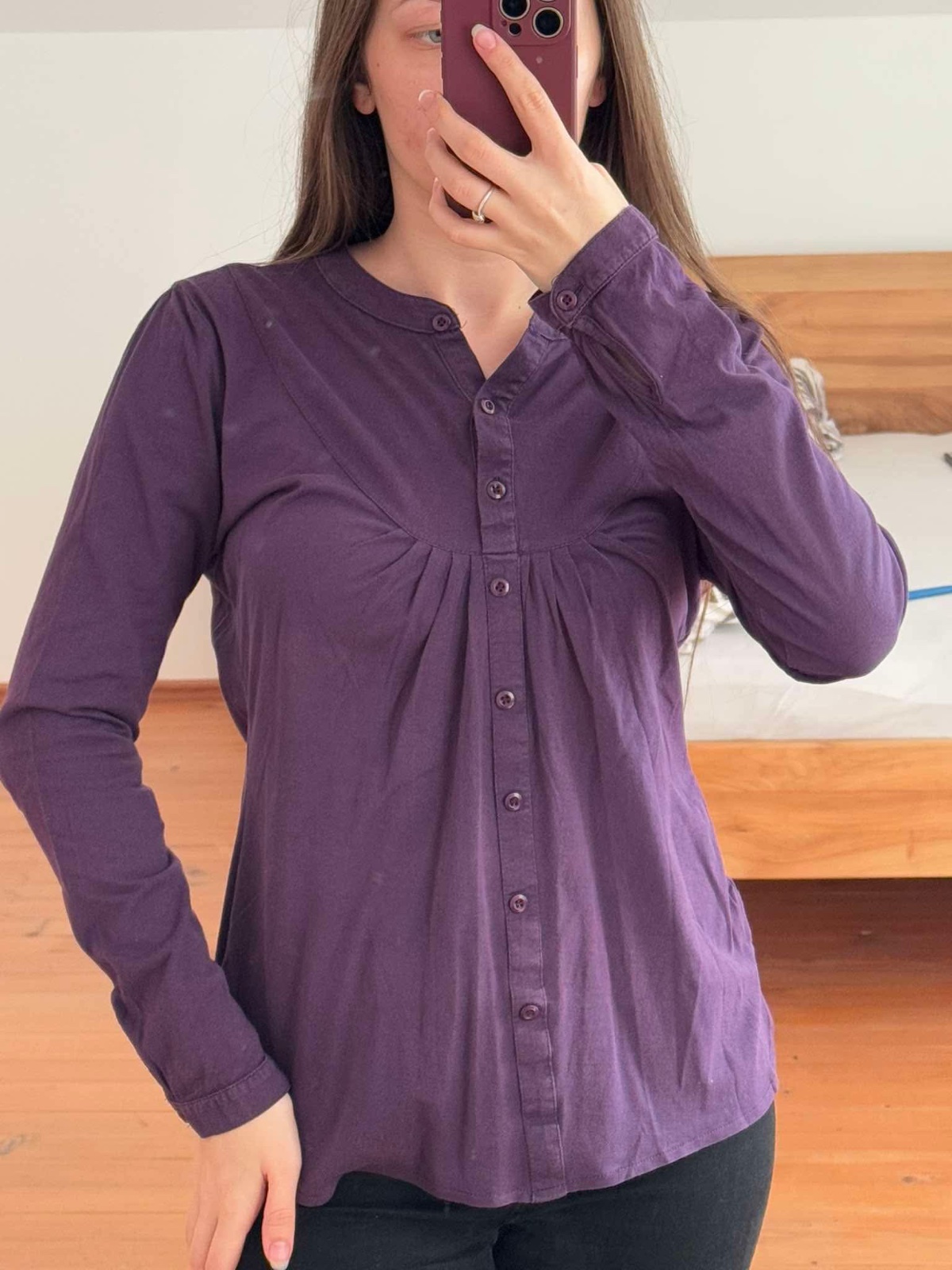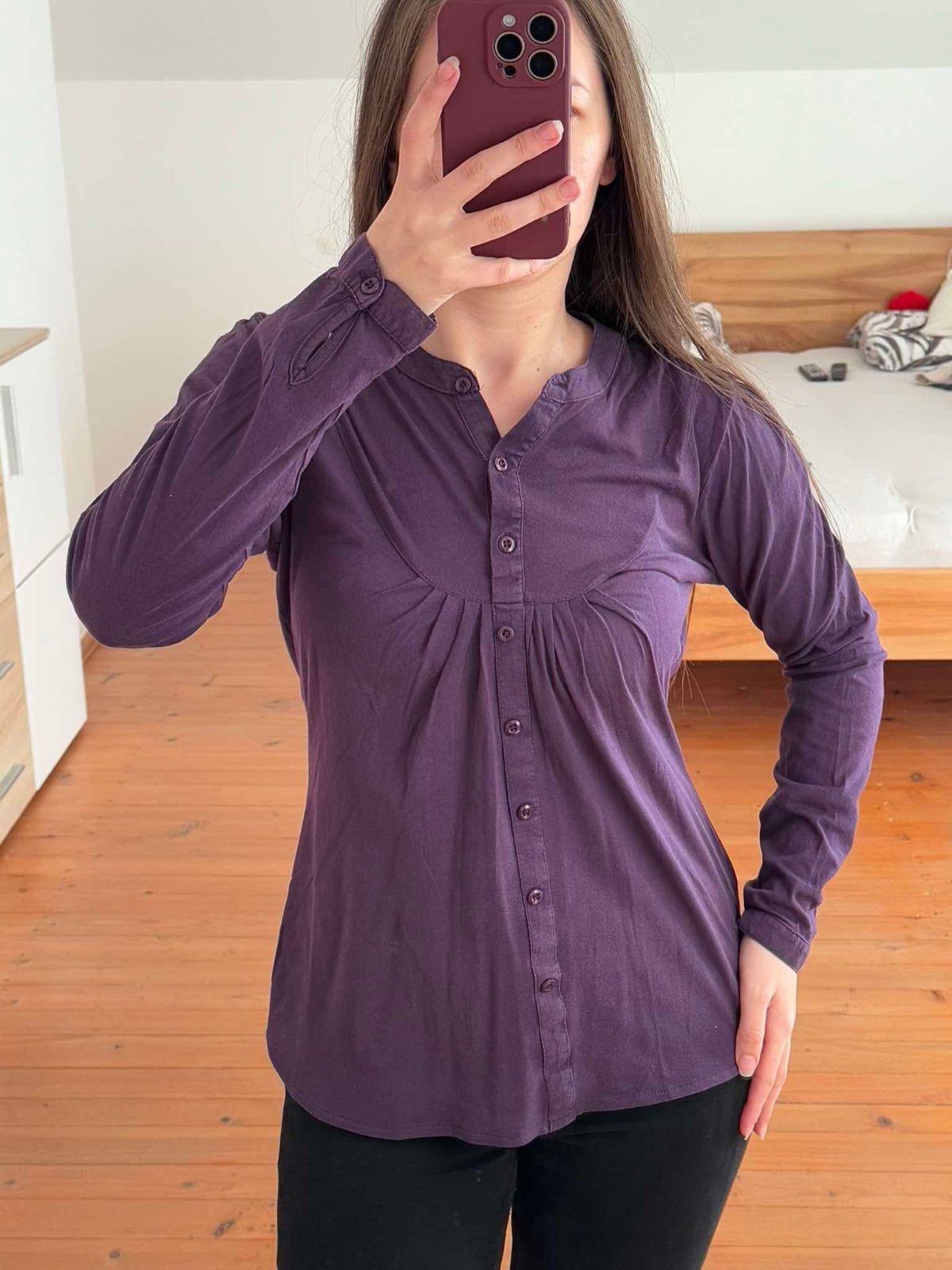 Pekná nosená dlhšia košeľa. Super na legíny. Veľkosť S, menšie M. 100% bavlna. Dĺžka 71 cm, cez prsia cca 46,5 cm. Farba je pekná cca ako na 3 foto. Minimálny nákup je 5€. Kuk aj ostatné moje inzer...