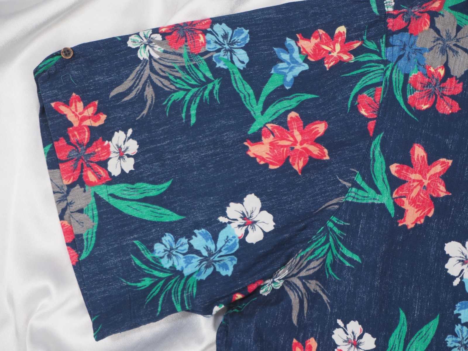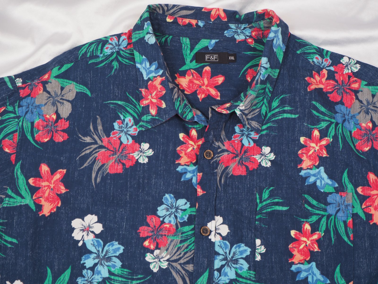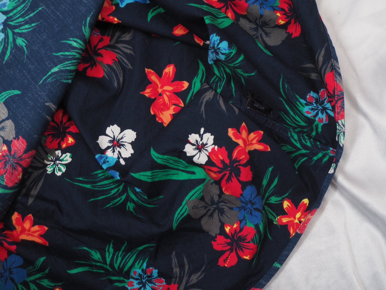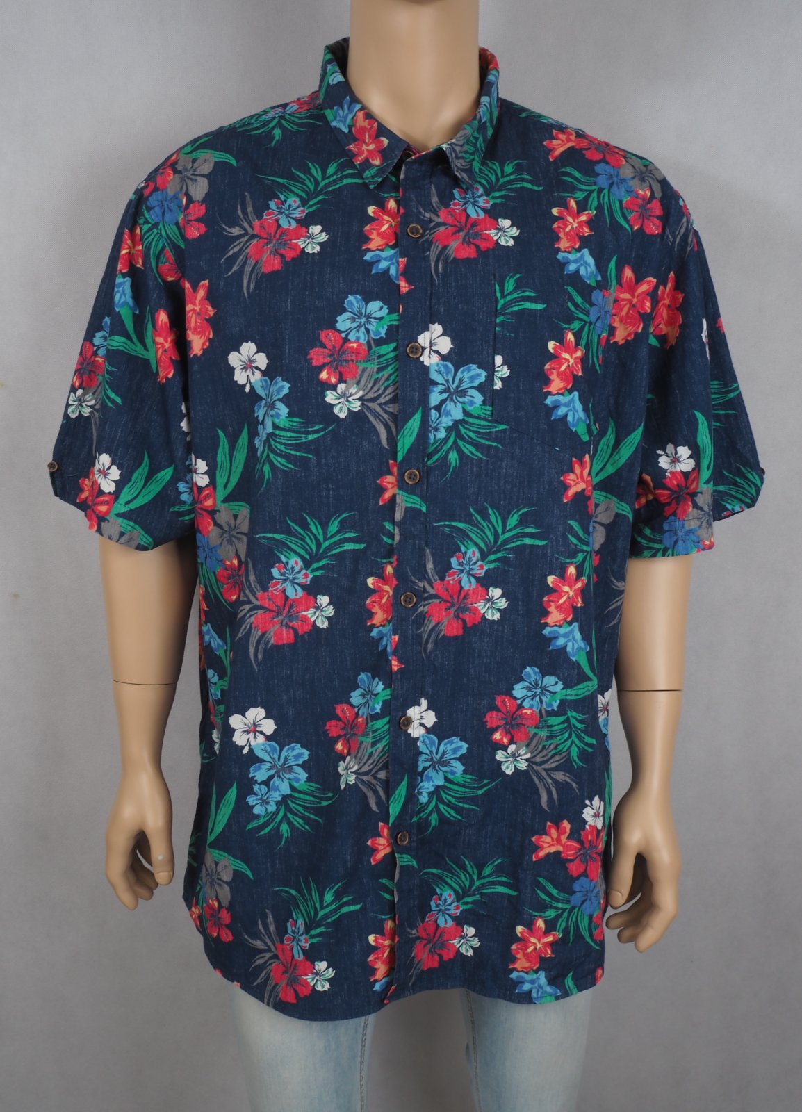 Kvalitná tmavomodrá košeľa s krásnou potlačou, materiál