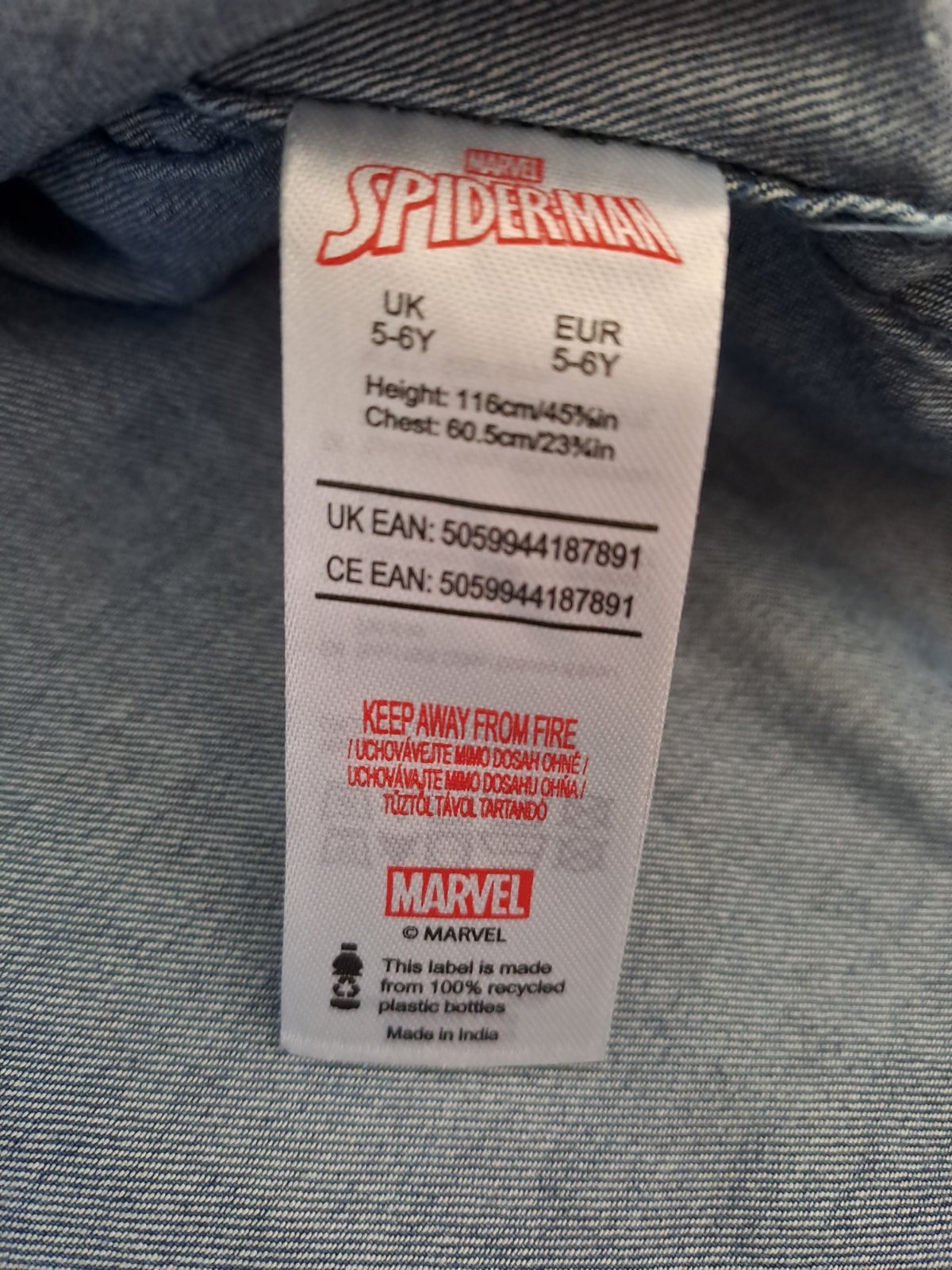 Krásna mäkkučká 1xoblečená Spider košeľa zn.F&F velkosti 116. Celková dĺžka 49cm