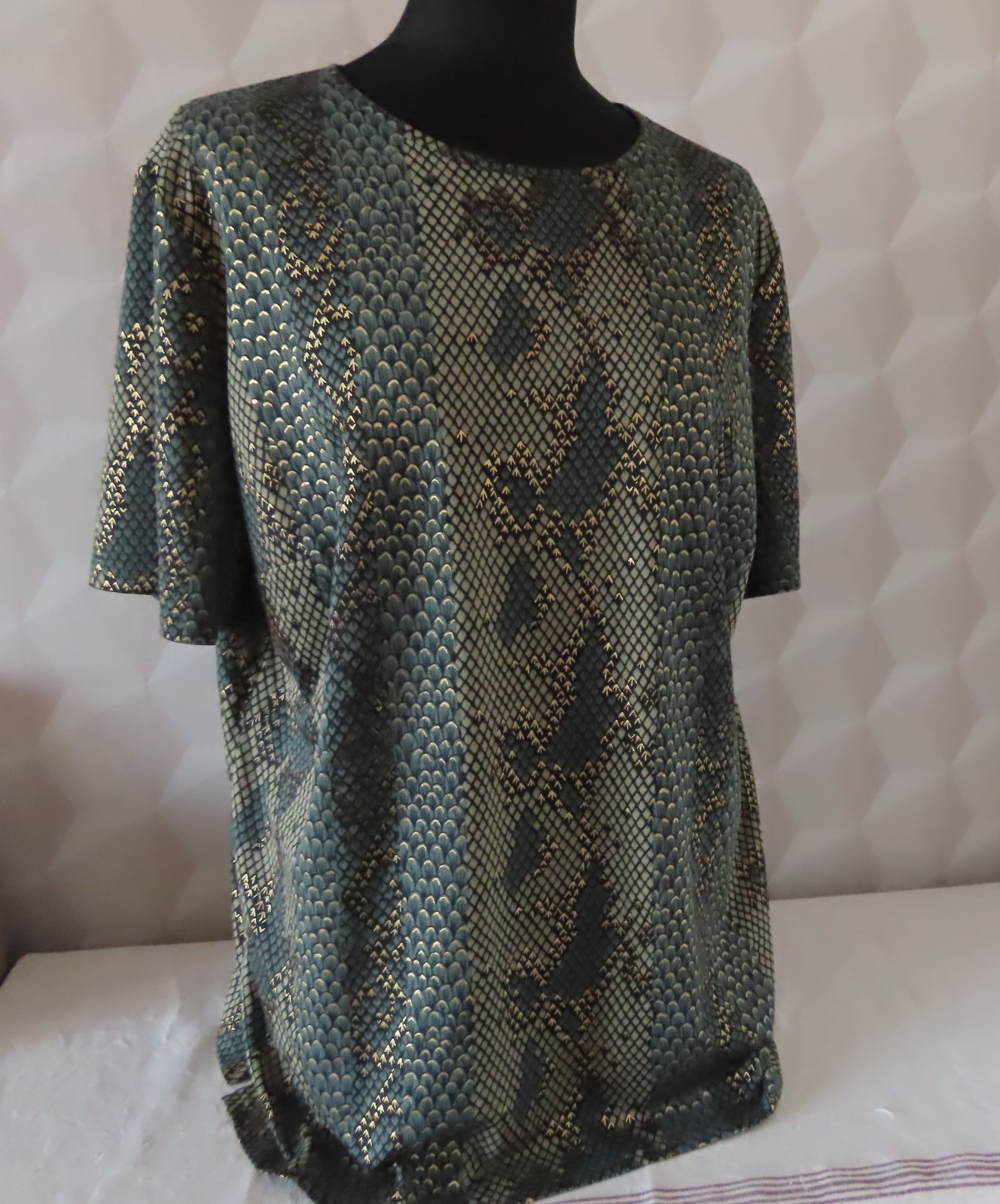 Top je krásny, akoby hadí vzor so zlatými odleskami.
