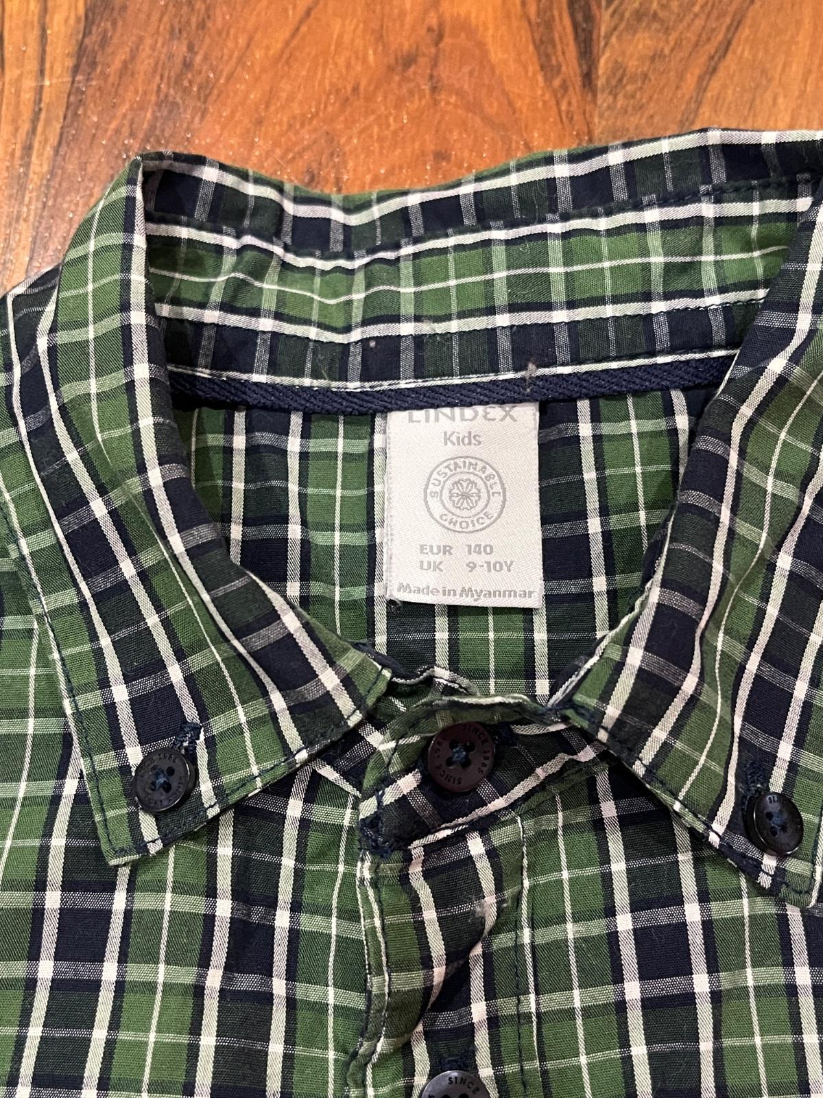 Predam zelenú kockovanú košeľu Lindex velkost 140, top stav, oblecena iba na Vianoce, 6€.