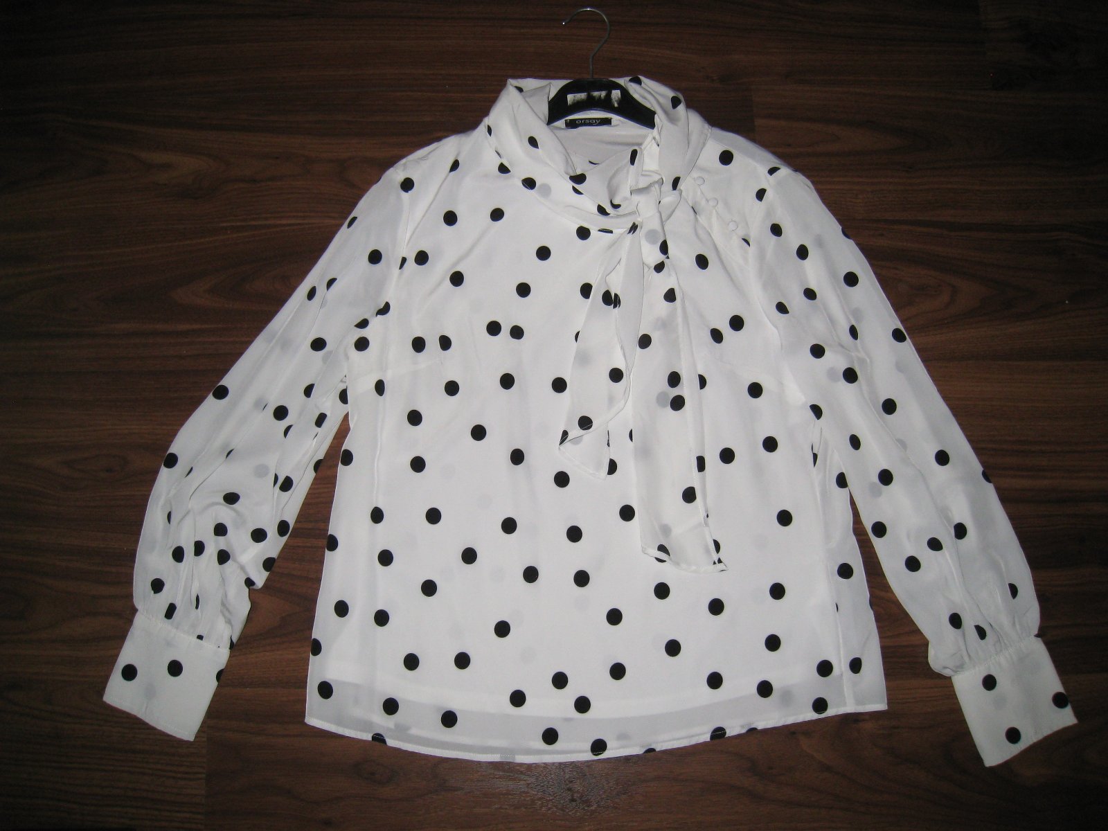 Zaujímavá elegantná blúzka, voľnejší padavý strih, veľkosť 40, 1x praná inak nenosená, rozmery: dĺžka 64cm, šírka v podpazuší 52cm.