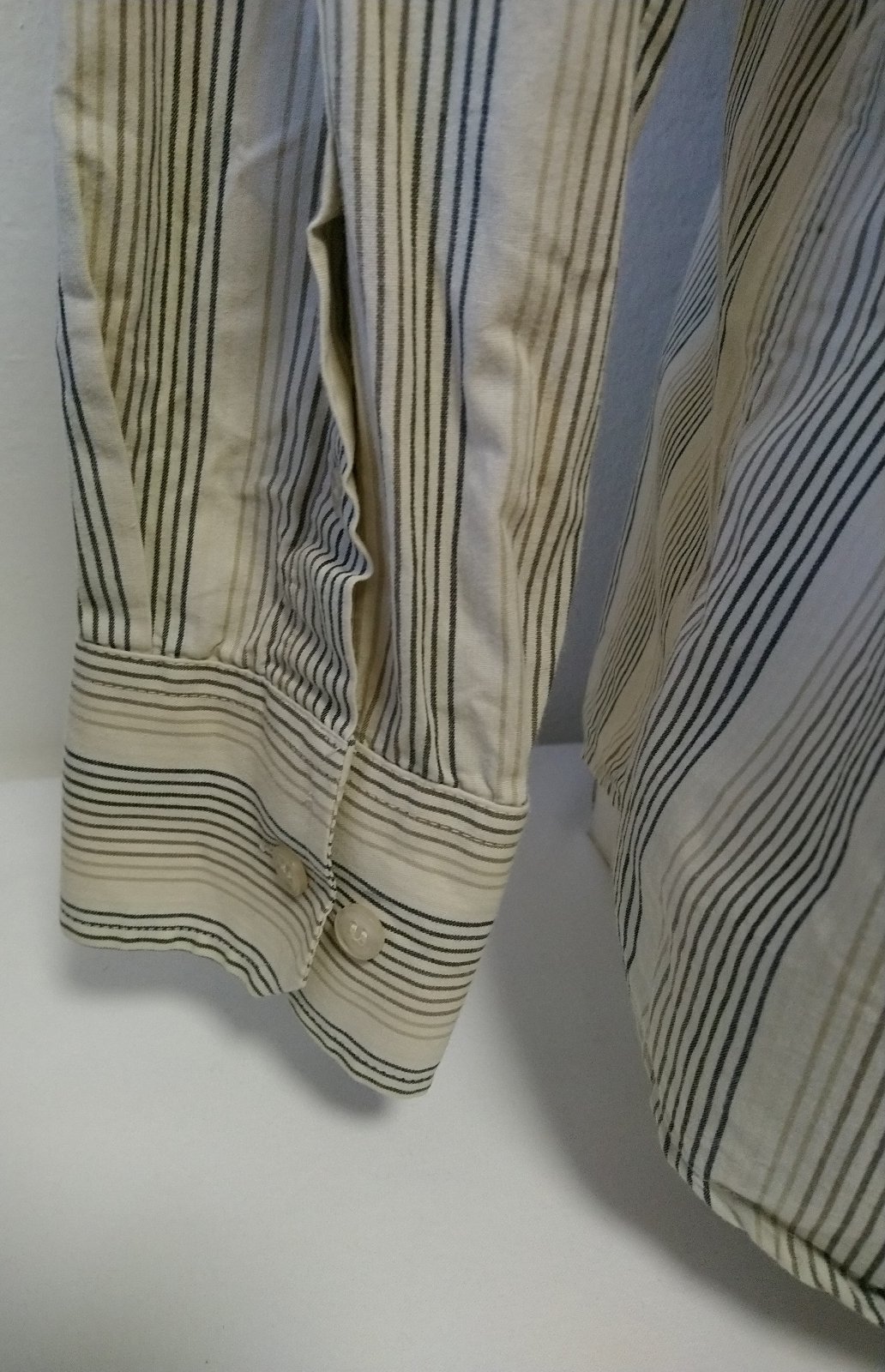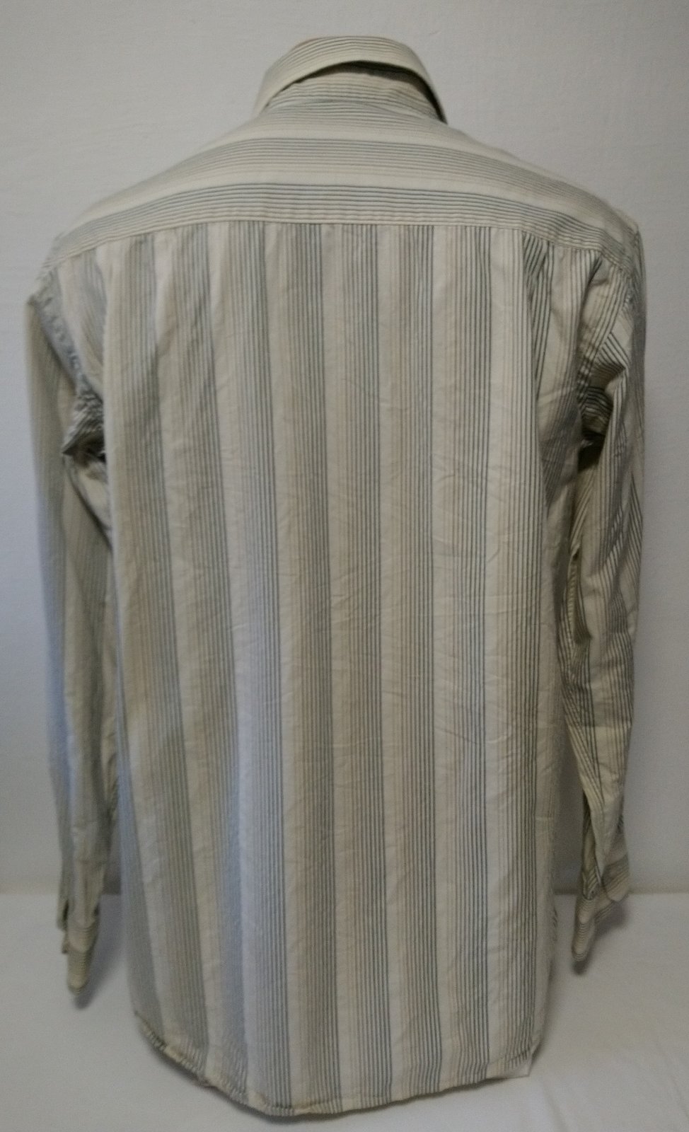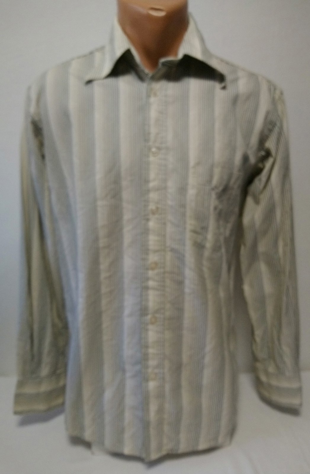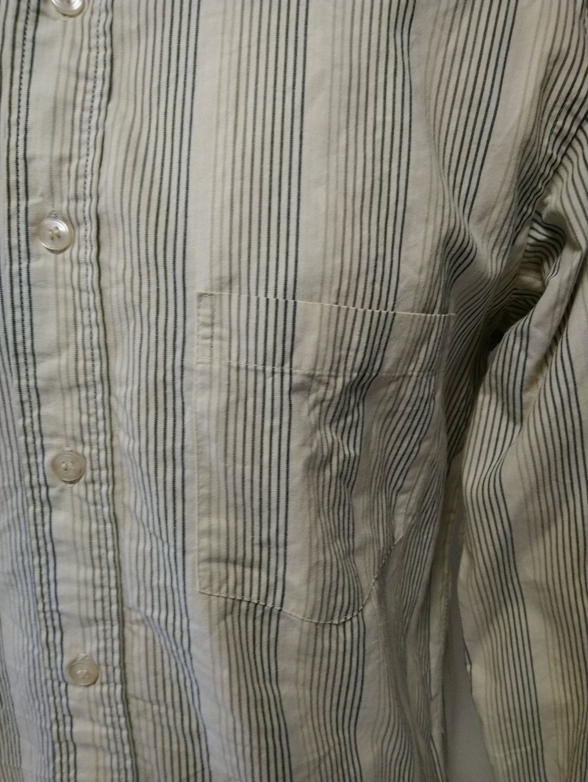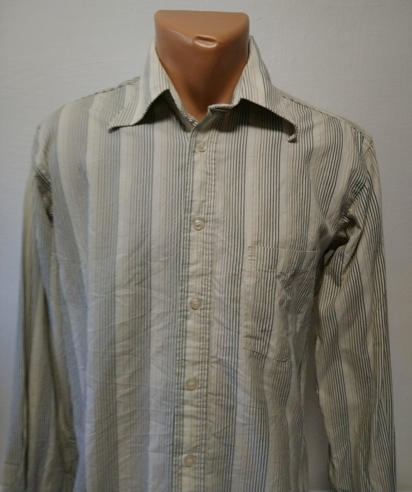 pánska krémová košeľa s farebnými zvislými pásikmi, zapínanie na gombíky, náprsné vrecko,
