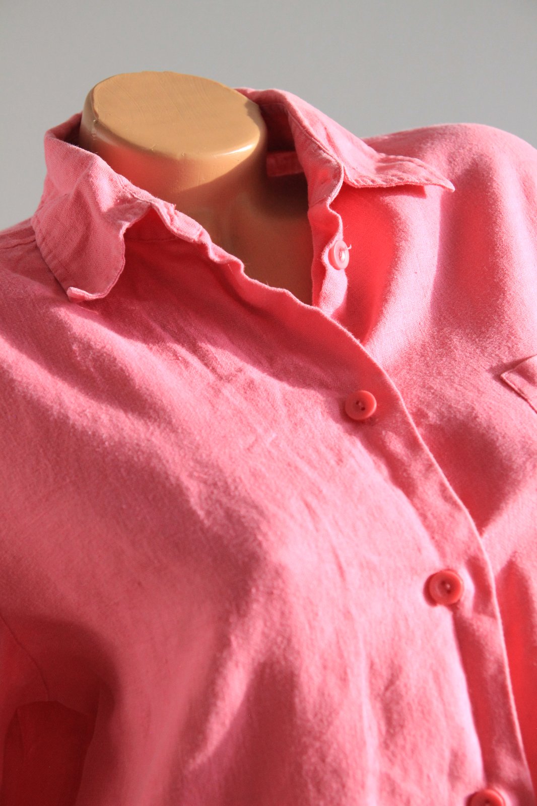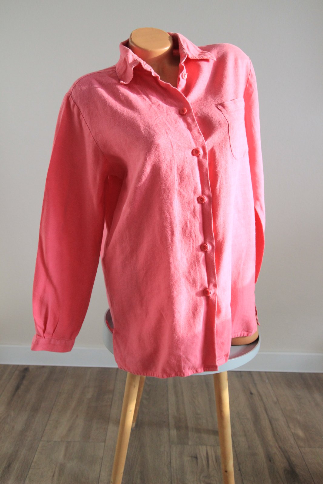 Ružová košeľa z bavlny a ľanu, nosená, bez poškodení. Veľkosť L.