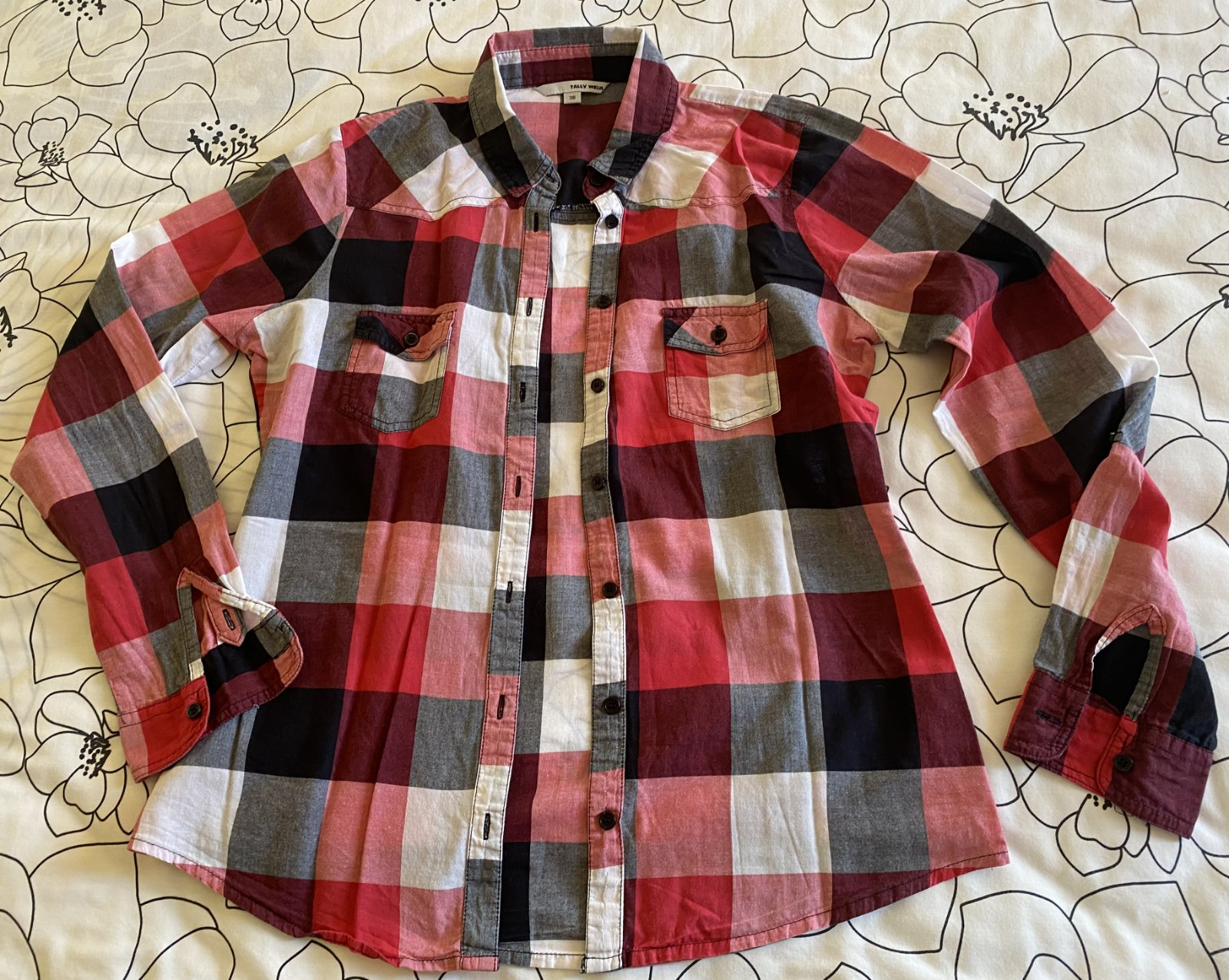 Bavlnená káro košeľa Tally Weijl písaná v. 38 - premerajte, kvalitne prepracovaná, kopa pekných detailov - viď detail. foto, vyhrňovacie rukávy, materiál 100% bavlna, pekná kombinácia farieb - ako na foto, asi 2x oblečená, vo veľmi dobrom stave. Miery: dĺžka od krku dolu: 61cm - na bokoch kratšia, šírka v podpazuší: 44cmx2, šírka pás: 39,5cmx2, šírka dolu: 45,5cmx2, rukáv od ramena: 57,5cm + 11cm plece - ramenu ku golieru.