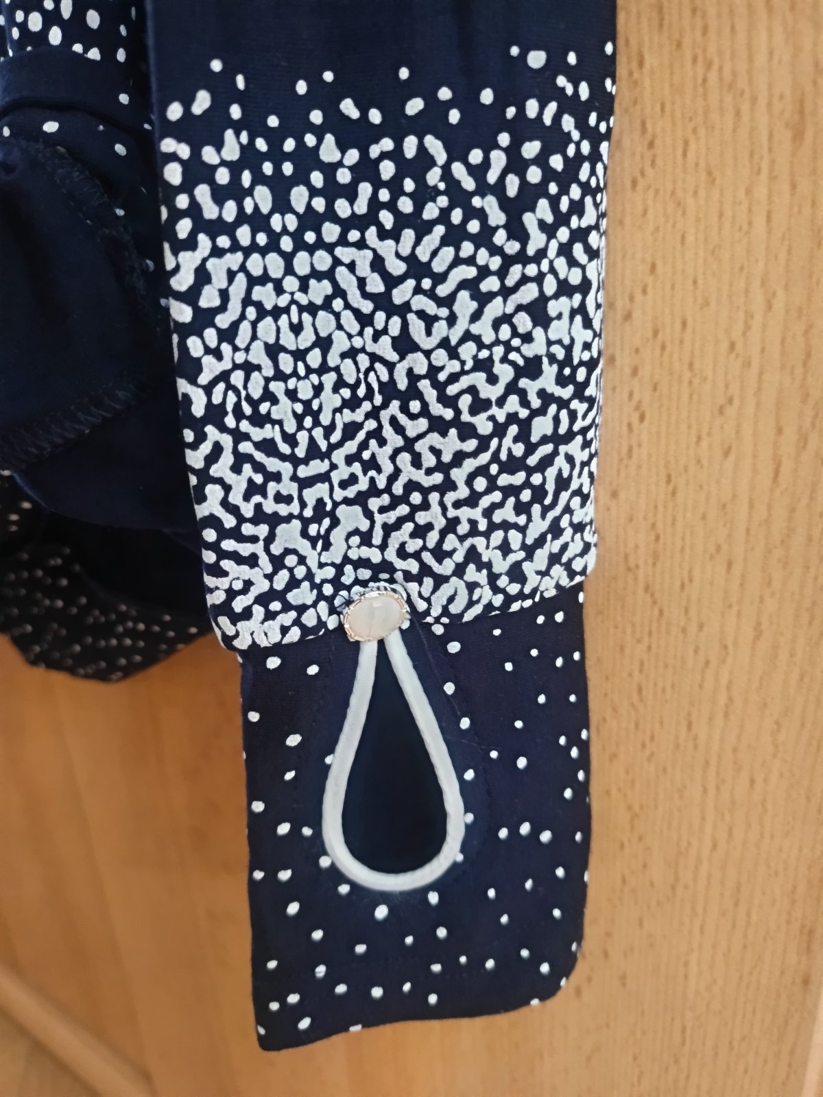 Kvalitná vzdušná blúzka, zapínanie na gombíky, materiál 100% polyester, super stav. prsia 76 cm pás 75 cm boky 78 cm dĺžka 88 cm rukáv od goliera 72 cm dš 2