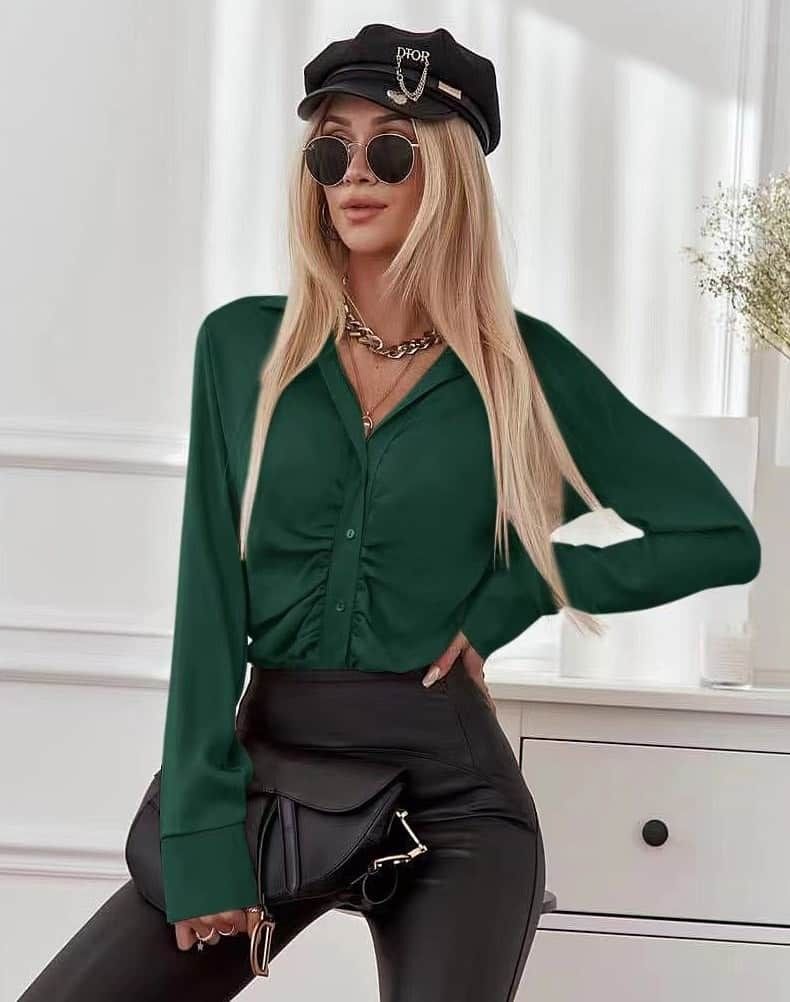 Zelena leskla bluzka, kosela. Velkost S. Raz oblecena.