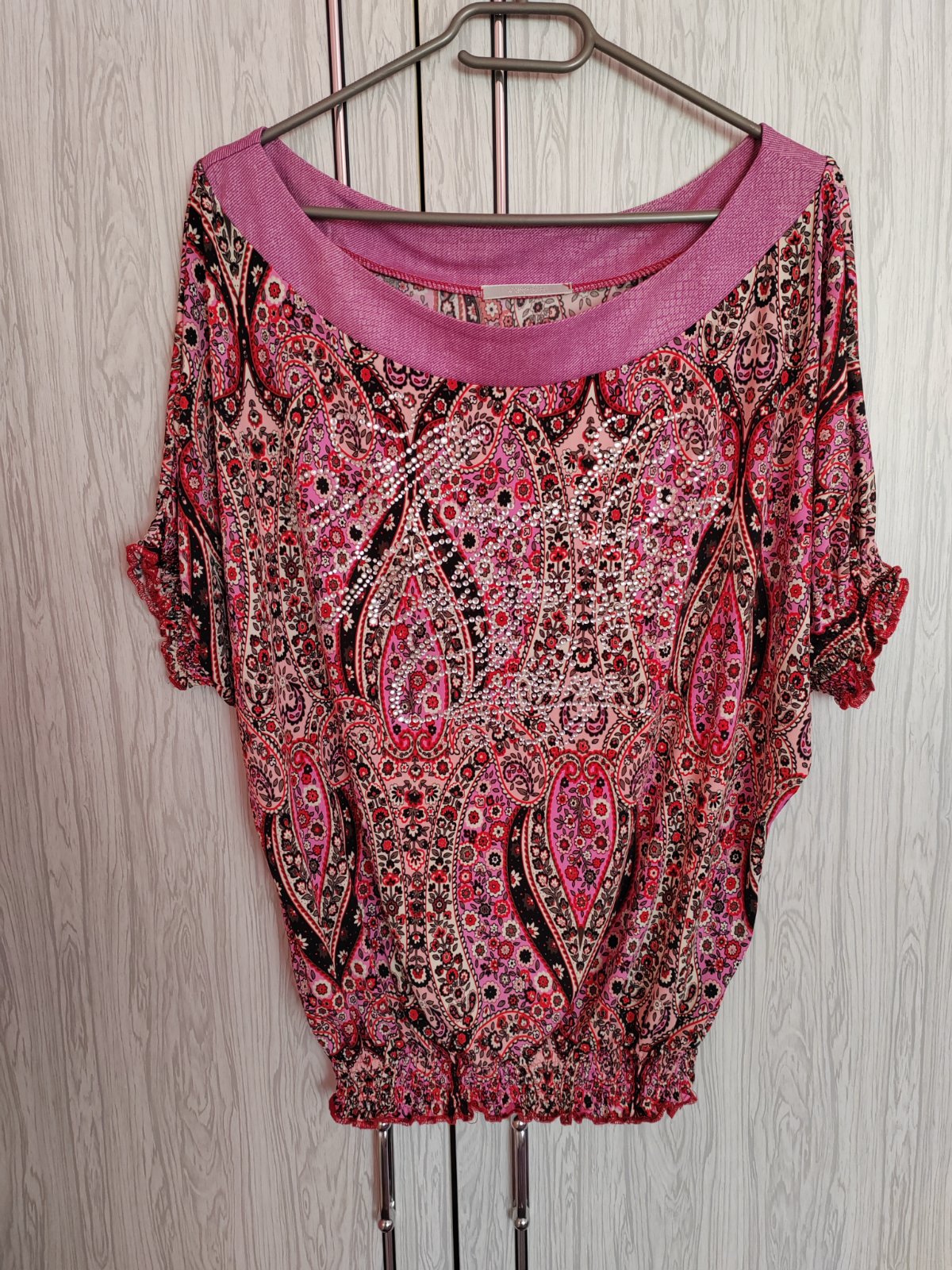 Krásna blúzka, perfektne sedí, pekný výstrih pre vyššie ženy dostatočne dlhy rukáv.. Výška je 41cm, dĺžka 63cm.