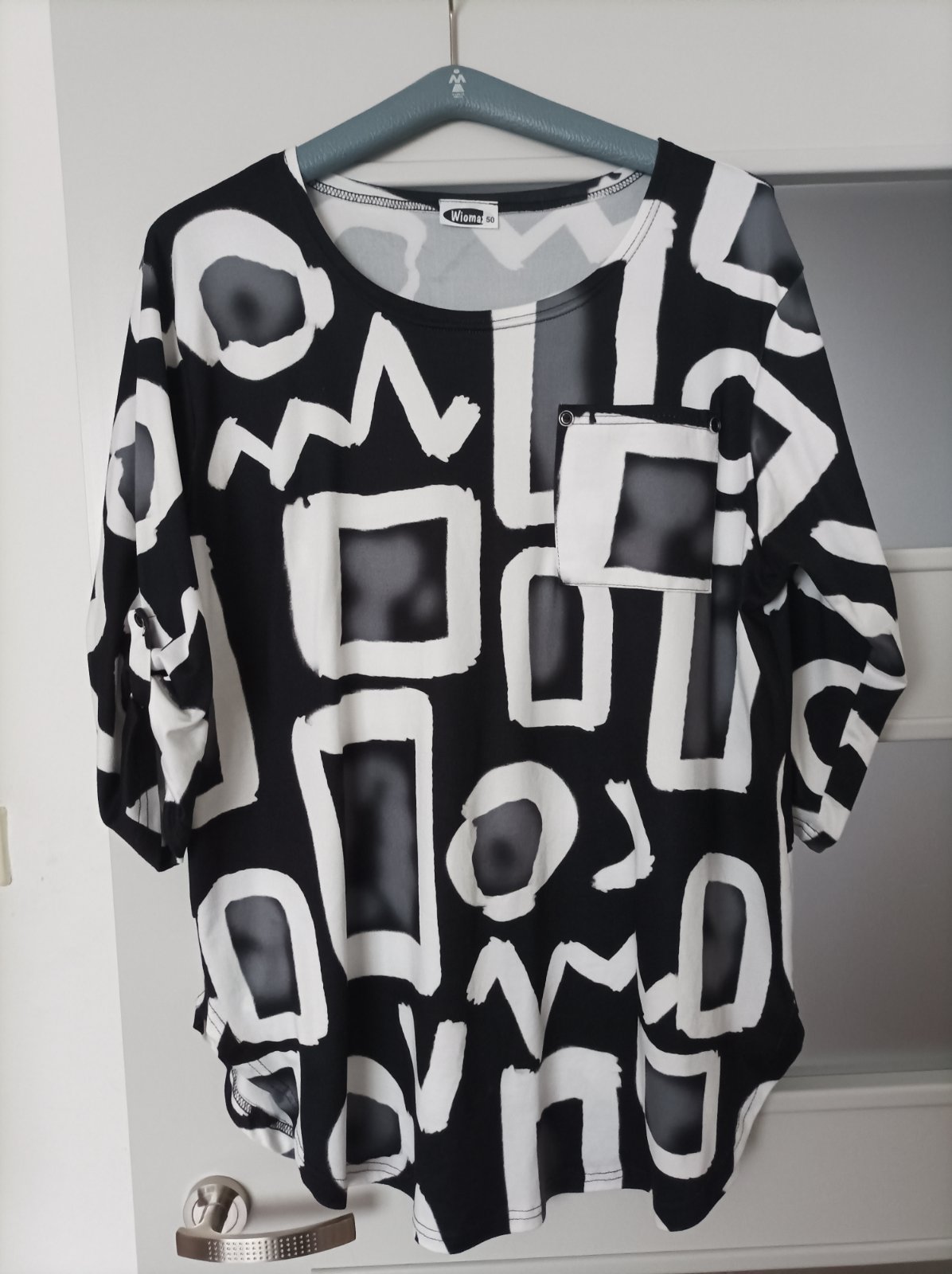 Moderné dámske tričko alebo košeľa, klasický strih. Veľmi pekne oživí váš outfit. Pekne sadne na akéjkoľvek postave. Veľkosti: 42, 44, 46, 48, 50, 52, 54. Vyrobené v Poľsku Ihneď k odberu.