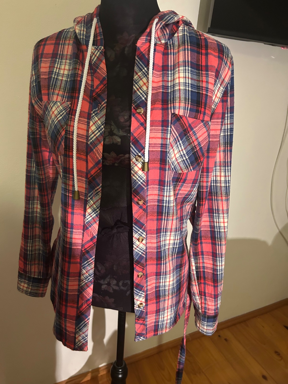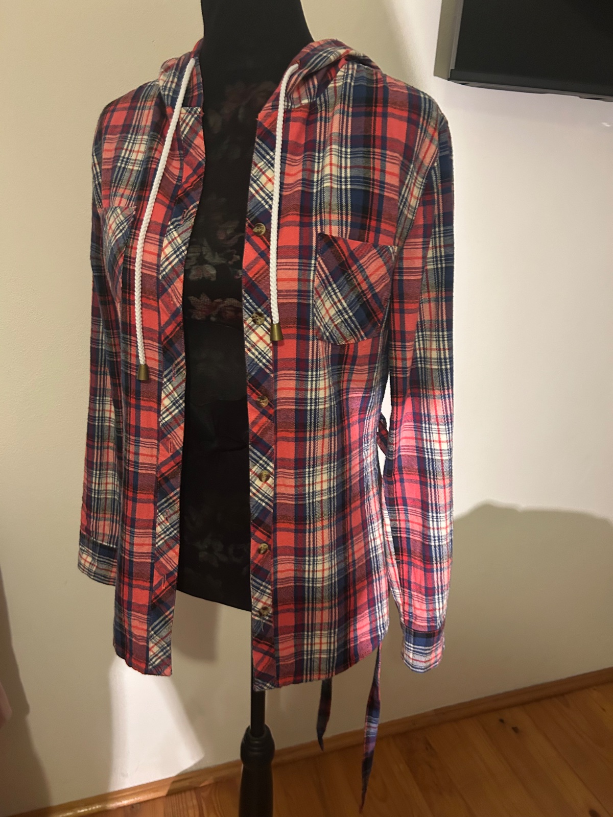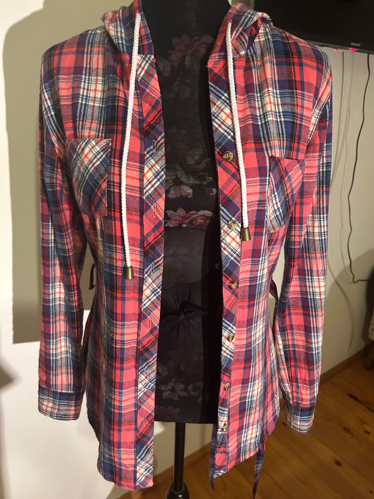 Károvaná košeľa s kapucňou